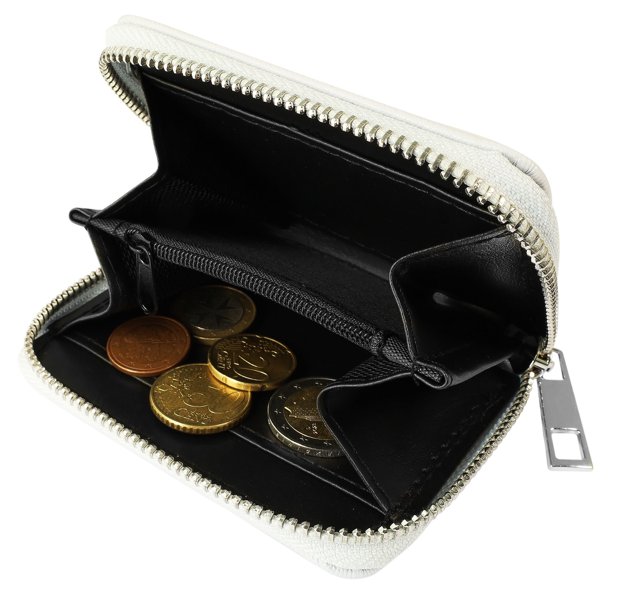 Deze damesportemonnee van imitatieleer is verkrijgbaar in verschillende kleuren. De hoogwaardige afwerking maakt de portemonnee duurzaam, robuust en gemakkelijk schoon te maken. Met een compact formaat van 8,5 x 10,5 x 2,4 cm. Het combineert functionaliteit met design op een geweldige manier. Het hoofdvak wordt afgesloten met een rits. Hierdoor blijven waardevolle spullen beschermd. De portemonnee heeft 2 biljetvakken, 1 muntvak met ritssluiting en 2 insteekvakken. Met zijn gestructureerde indeling en moderne ontwerp is deze portemonnee een geweldige metgezel voor elke dag.