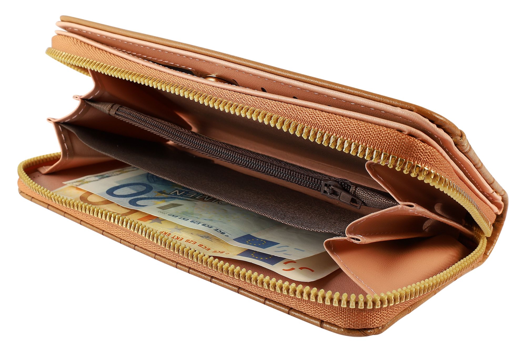 Productinformatie "Damengeldbörse mit Krokooptik, Lederimitat, hellbraun"