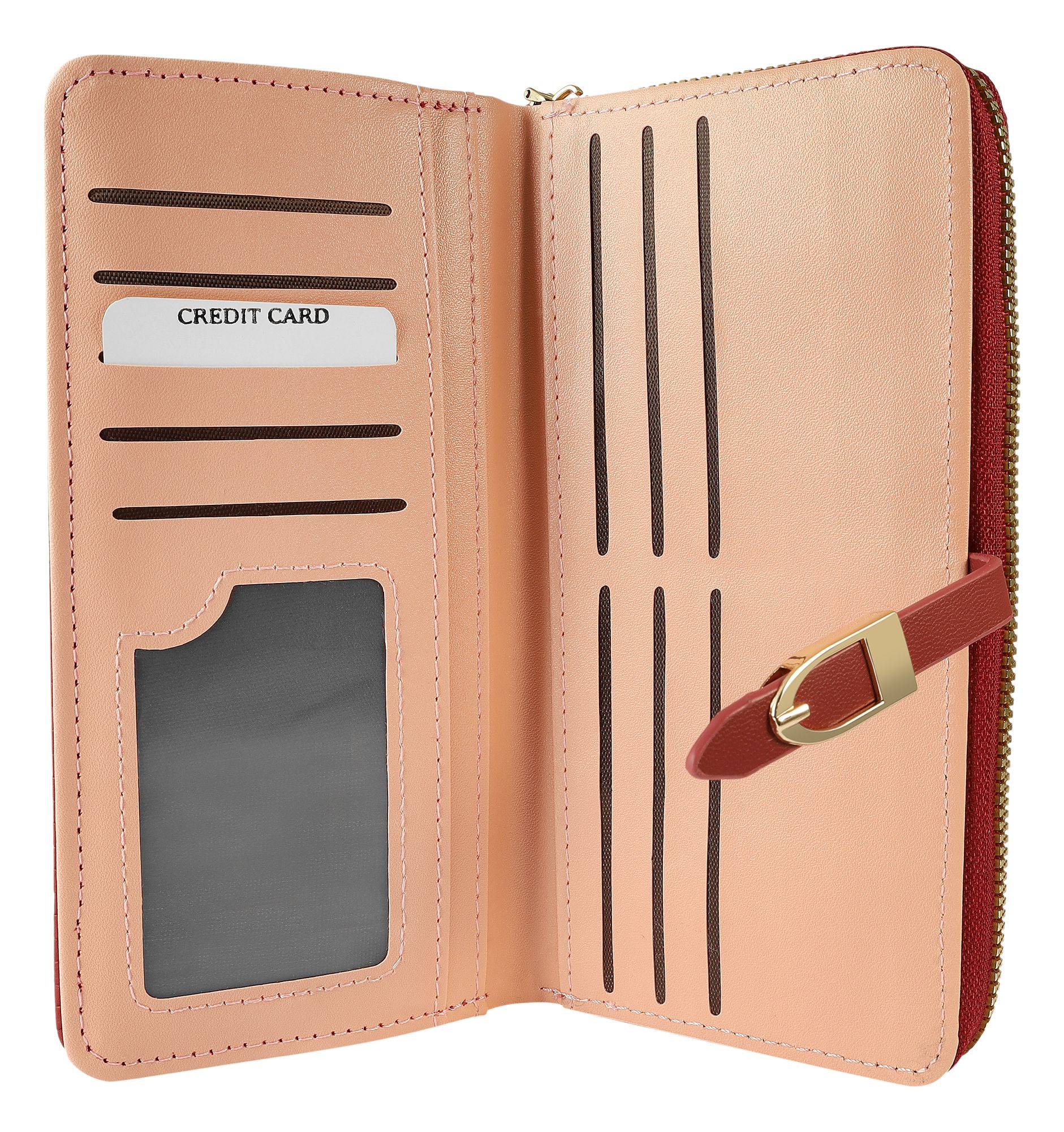 - Binnenin vind je 10 vakjes voor creditcards, een transparant vak voor ID-kaarten en drie insteekvakken voor een optimale organisatie van je financiën.