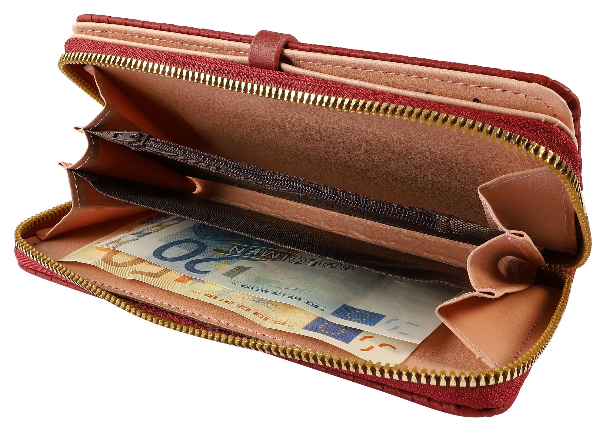Productinformatie "Damesportemonnee van imitatieleer, geweven ontwerp, rood"