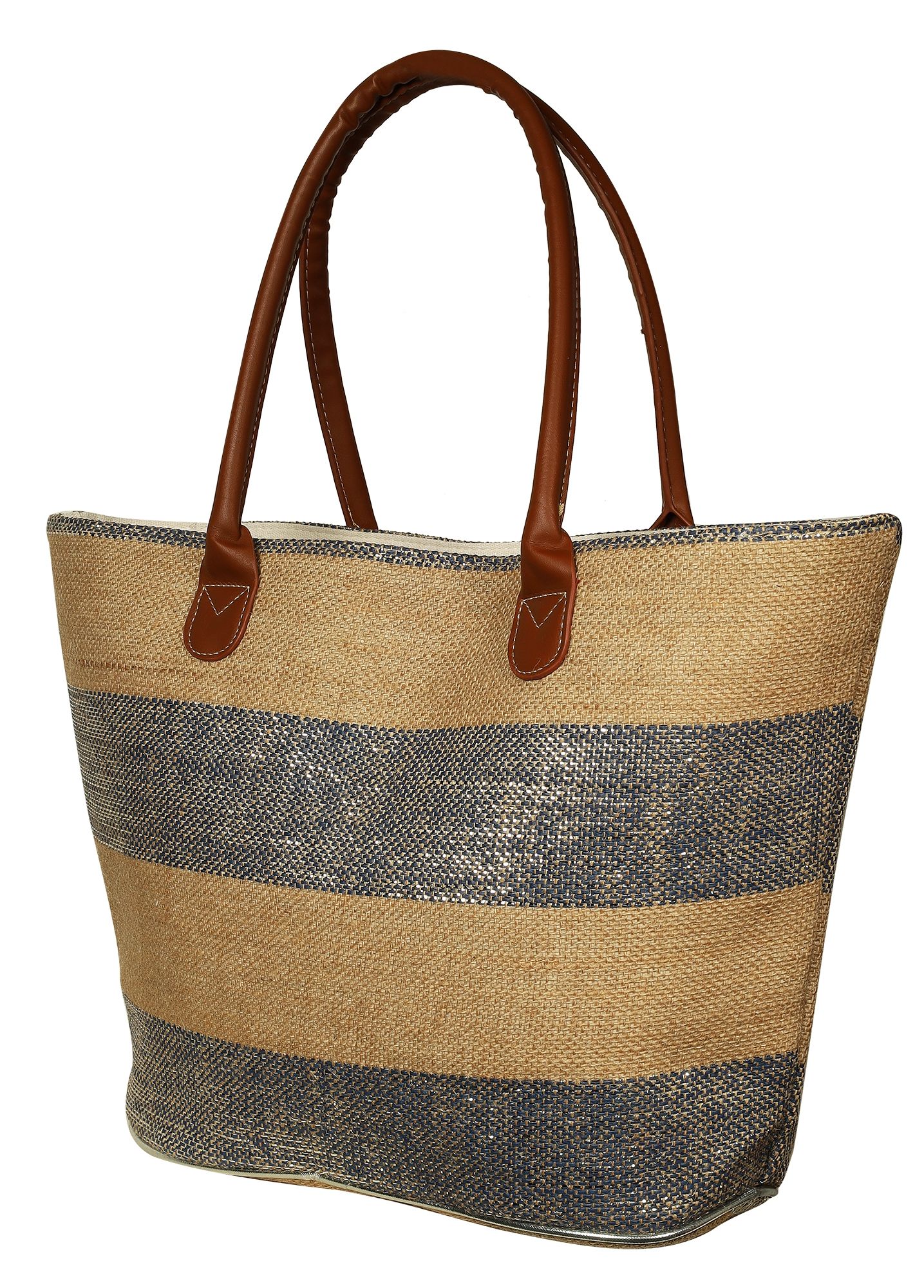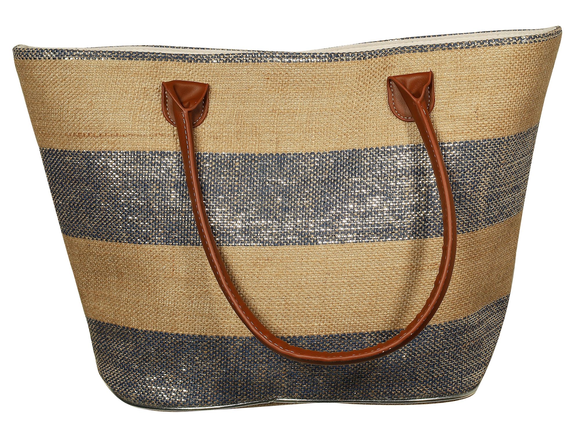 Onze strandtas van stro is een zomers accessoire dat niet alleen indruk maakt door het natuurlijke ontwerp, maar ook door het praktische formaat. Met zijn royale afmetingen van 53 x 33 x 14,5 cm is deze strandtas de ideale metgezel voor zonnige dagen. Het ruime hoofdvak wordt afgesloten met een rits om je strandspullen of persoonlijke bezittingen te beschermen. Het gebruik van stro geeft de tas niet alleen een licht gevoel, maar benadrukt ook de trendy zomerse look. In een aantrekkelijke kleurencombinatie van beige, bruin en zilver is het een stijlvolle highlight voor elke stranddag.