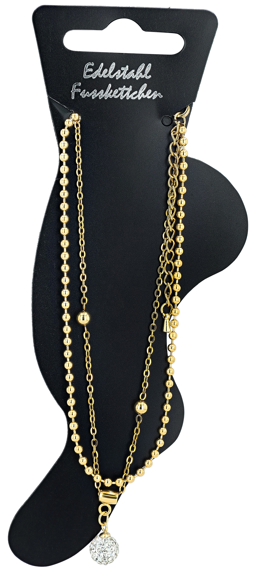 Dit elegante enkelbandje van hoogwaardig roestvrij staal in een koele zilverkleur of warme goudkleur is 24 cm lang, 6 mm breed en 4 mm dik en wordt gekenmerkt door het dubbelrijige ontwerp in een anker- en bolletjespatroon: twee contrasterende roestvrijstalen kettinkjes die stijlvol de enkel strelen.