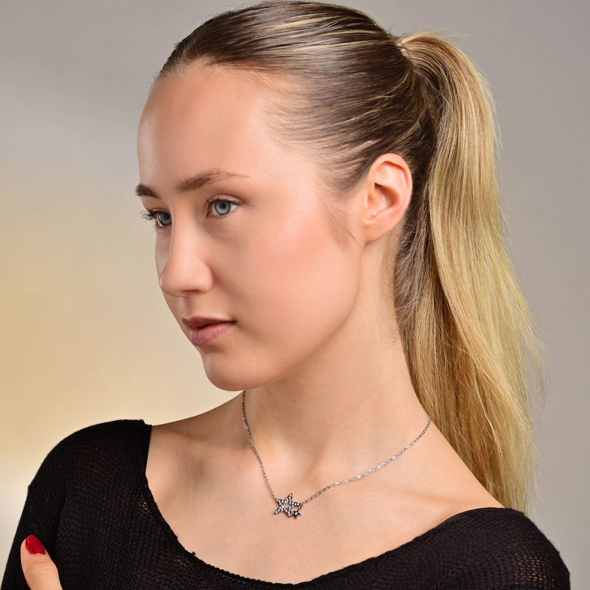 Een tweede kleine sterhanger van 6 x 6 mm, aangevuld met een fonkelende steen, brengt extra beweging en dynamiek in de ketting. Deze kleine sterhanger hangt losjes aan de hoofdhanger en schommelt bij elke beweging, waardoor de ketting een speels tintje krijgt.