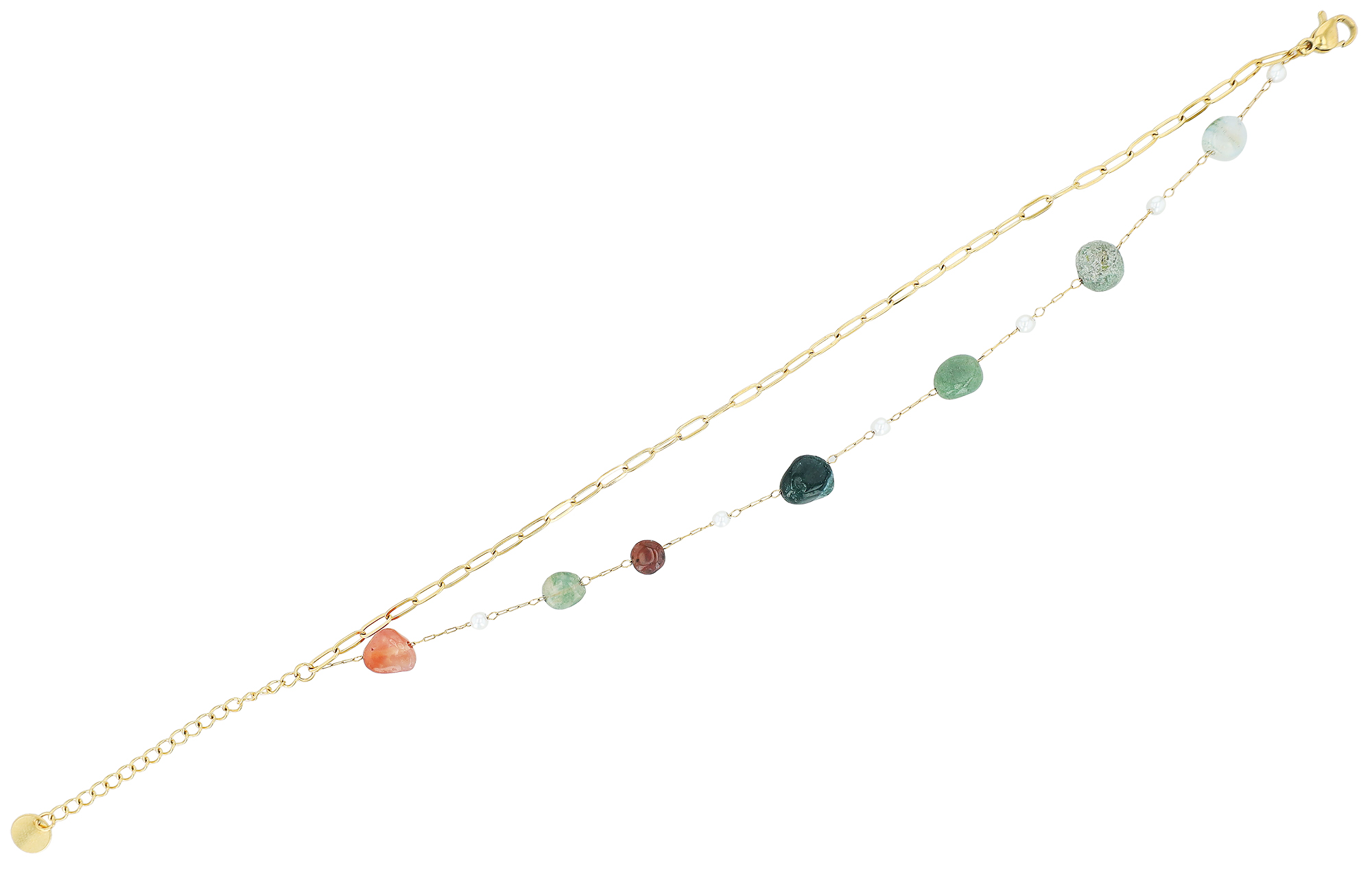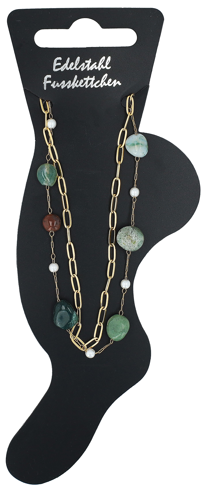 Productinformatie ""Danielle" Fußkette mit Naturstein aus Edelstahl, goldfarben, 21 + 5 cm"