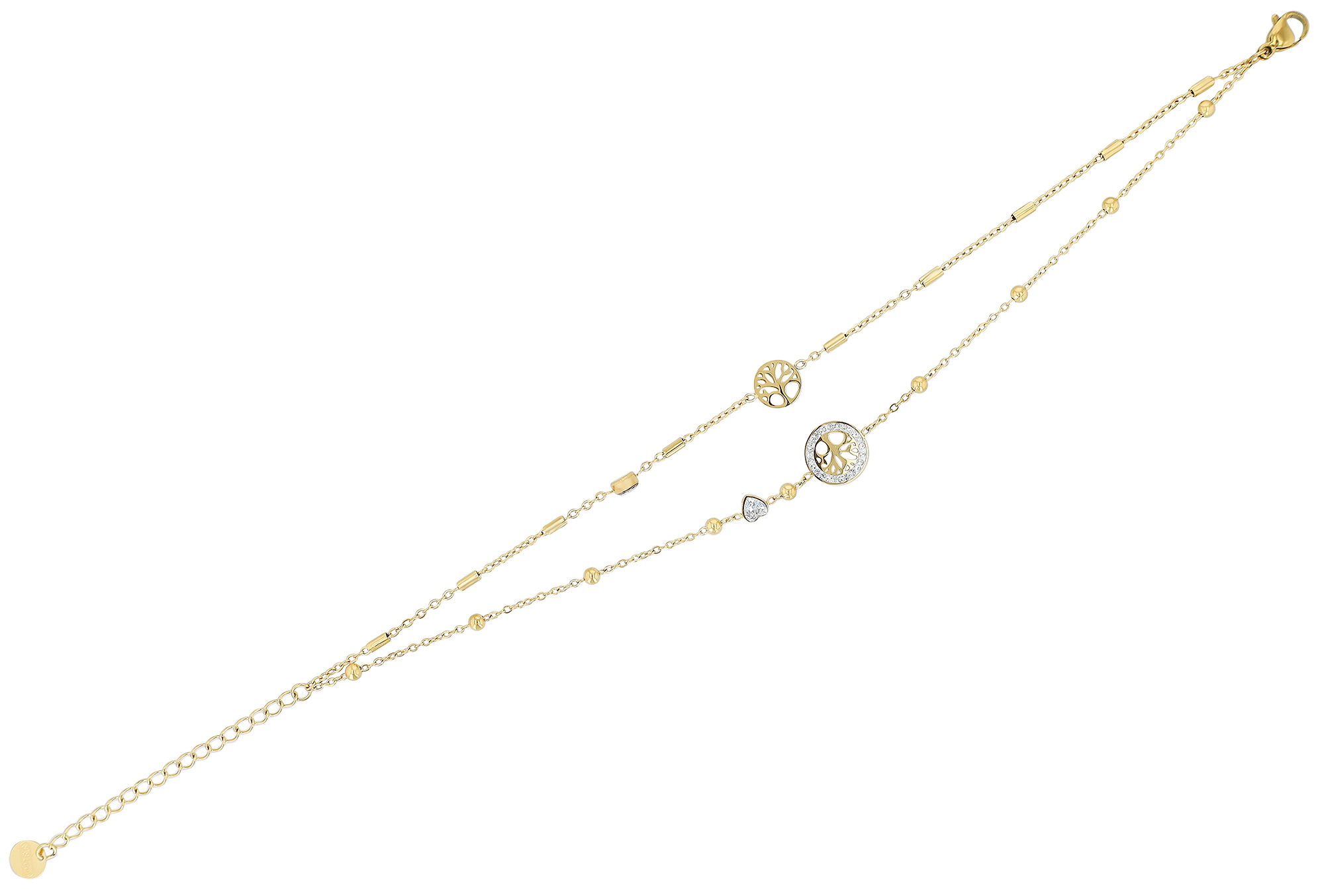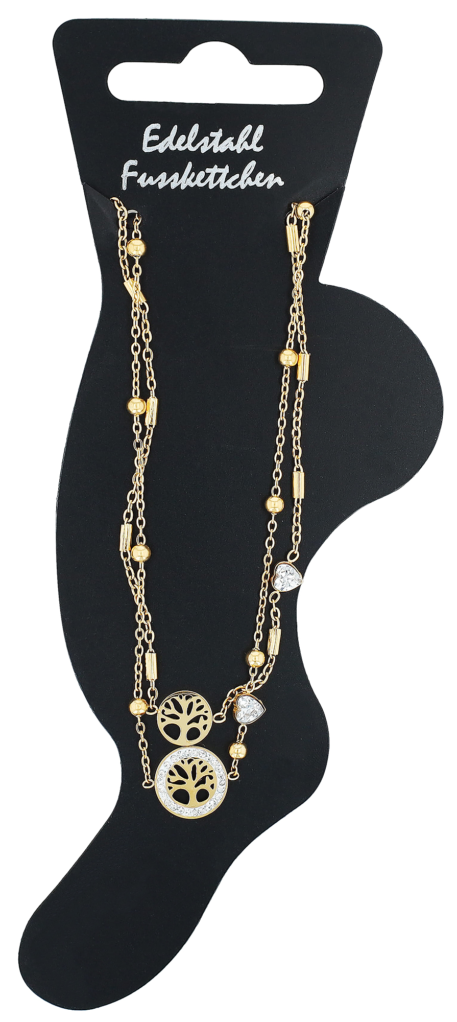 Productinformatie ""Danika" Fußkette, Lebensbaum, Herz, Edelstahl, 21 + 5 cm, goldfarben"