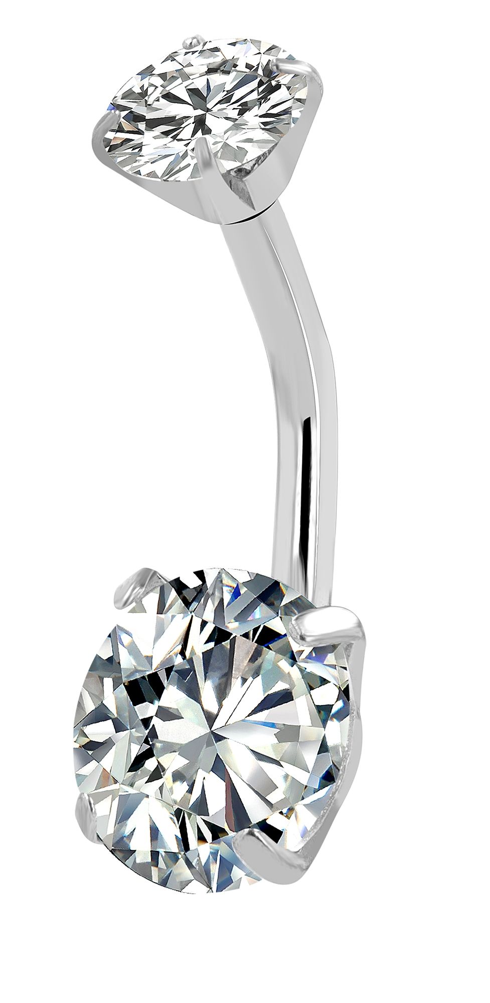 Productinformatie ""Dasha" 316L roestvrijstalen messing navelpiercing, zirkonia afwerking, staafdikte 1,6 mm/ lengte 11 mm"