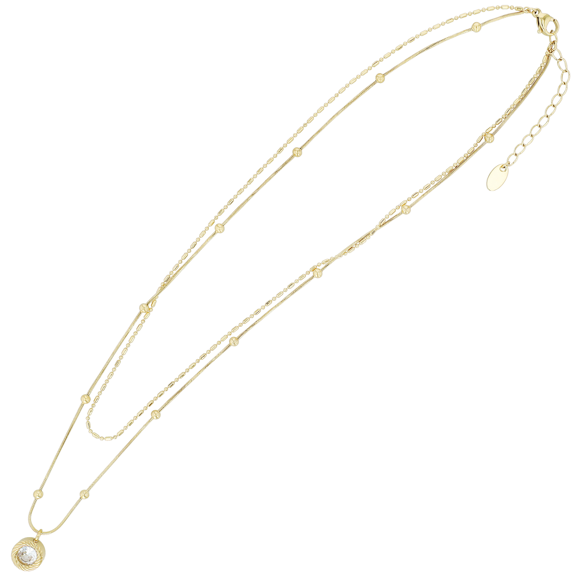 Deze elegante, dubbelrijige roestvrijstalen ketting combineert filigraan lichtheid met stijlvolle verfijning. De lengtes van 41,5 cm en 48 cm, aangevuld met een verlenging van 5 cm, maken flexibele aanpassing mogelijk. De bovenste ketting heeft een subtiel patroon, terwijl de onderste slangenketting een elegant accent legt met een ronde hanger (Ø 10 mm) en een fonkelende zirkonia in het midden. Extra kleine bolletjes op 3 cm afstand geven het ontwerp een speciaal accent.