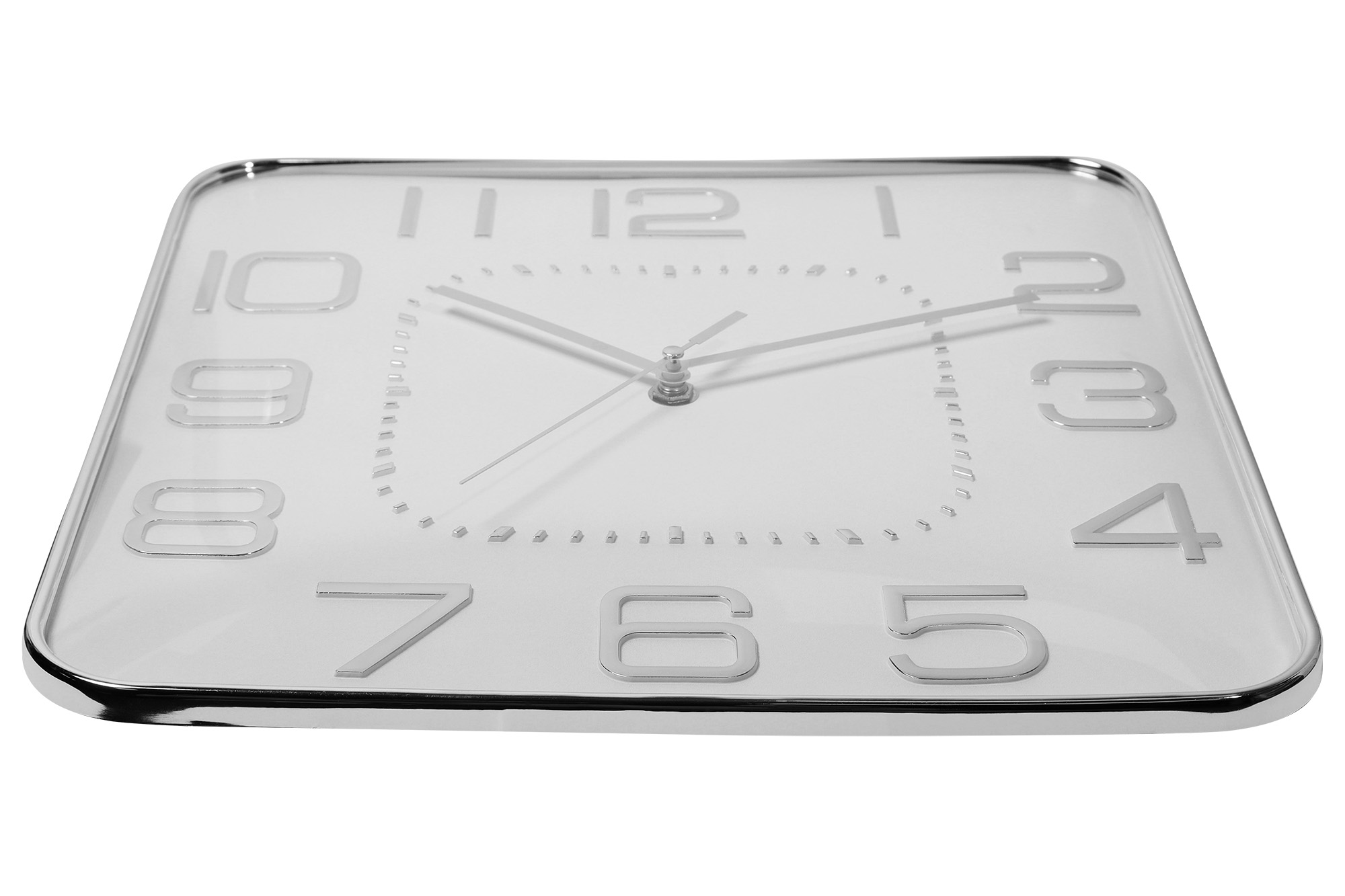 Productinformatie "Design wandklok, vierkant 30,5 x 30,5 cm, zilverkleurig/wit"