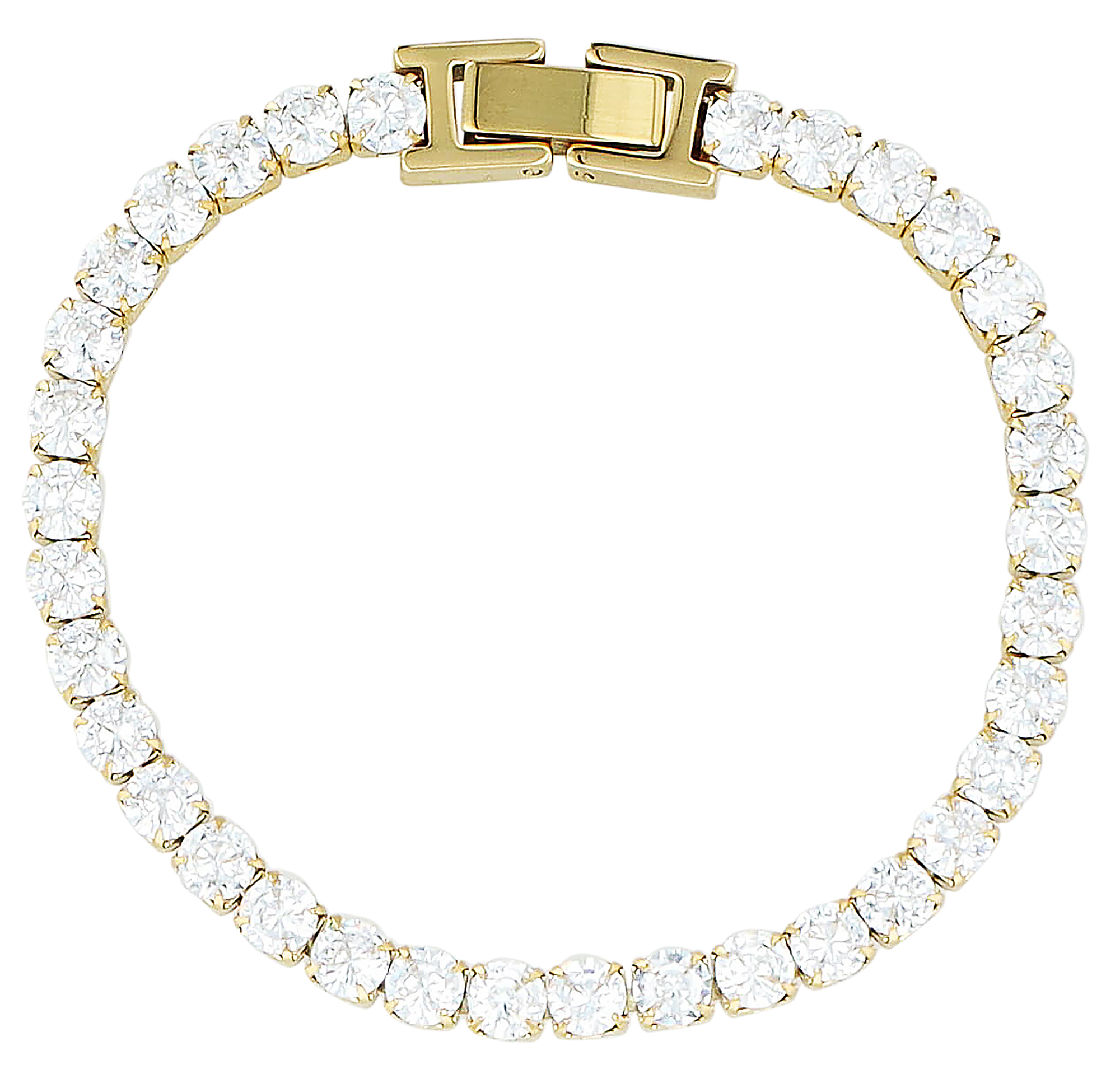 Die zahlreichen aneinander gereihten, weißen Zirkonia-Steine, die in einer 4er-Krappenfassung gefasst sind, verleihen dem Armband einen luxuriösen Glanz.