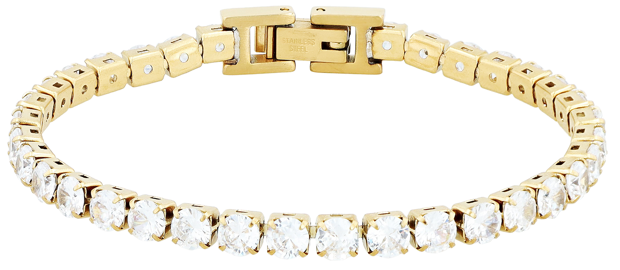 Aus hochwertigem Edelstahl hat das Tennis-Armband eine Länge von 17,5 cm und kann dank der mitgelieferten Verlängerung auf 19 cm angepasst werden. Mit einer Breite von 4 mm und einer Stärke von 3 mm ist das Armband ein Highlight am Handgelenk. Der praktische Edelstahl-Durchschub-Klappverschluss hält das Armband sicher am Handgelenk der Trägerin