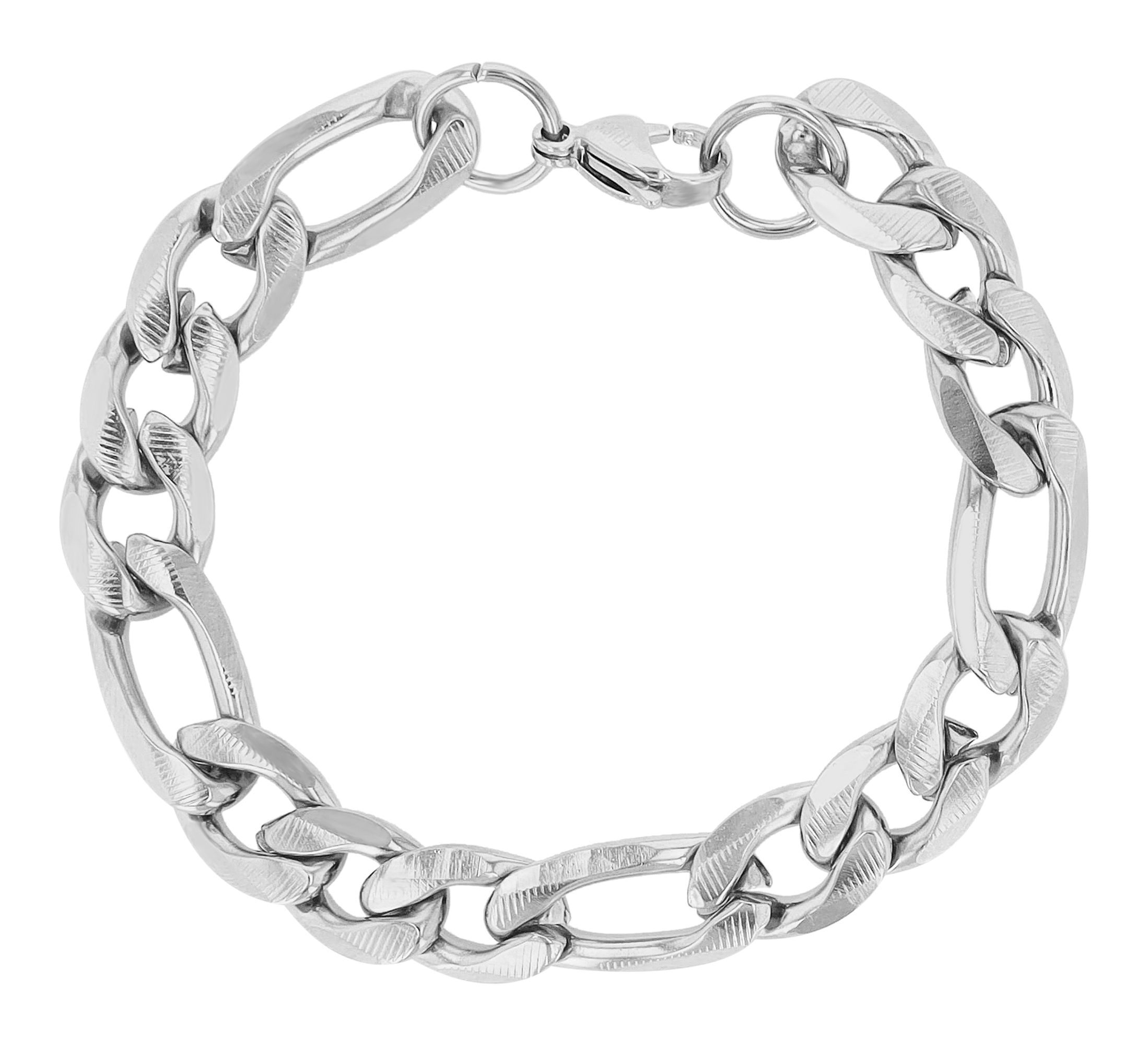 De Figaro armband van het merk Akzent is 21 cm lang, 11 mm breed en 3 mm dik - de perfecte combinatie van kracht en subtiliteit. Hij is gemaakt van roestvrij staal en belooft niet alleen een robuuste duurzaamheid, maar ook een tijdloze schoonheid die de tand des tijds zal doorstaan. De speciale rangschikking van de kettingelementen wordt gekenmerkt door een afwisselende opeenvolging van langwerpige en ovale schakels, wat de armband een opvallende en toch elegante charme geeft. Gesloten met een karabijnsluiting biedt de Figaro armband niet alleen een veilige houvast, maar is ook gemakkelijk te hanteren. De verschillende kleuropties waarin de armband verkrijgbaar is, maken het mogelijk om aan elke smaak te voldoen.