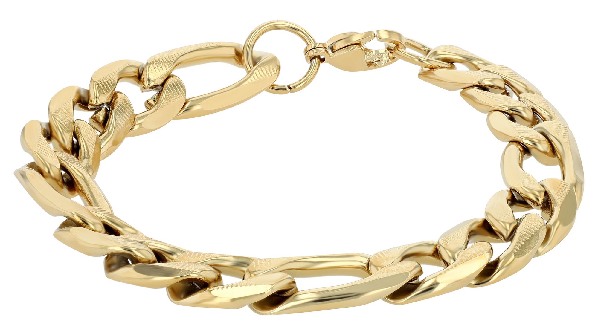 Productinformatie ""Devin" accent Figaro armband, roestvrij staal, 21 cm, goudkleurig"