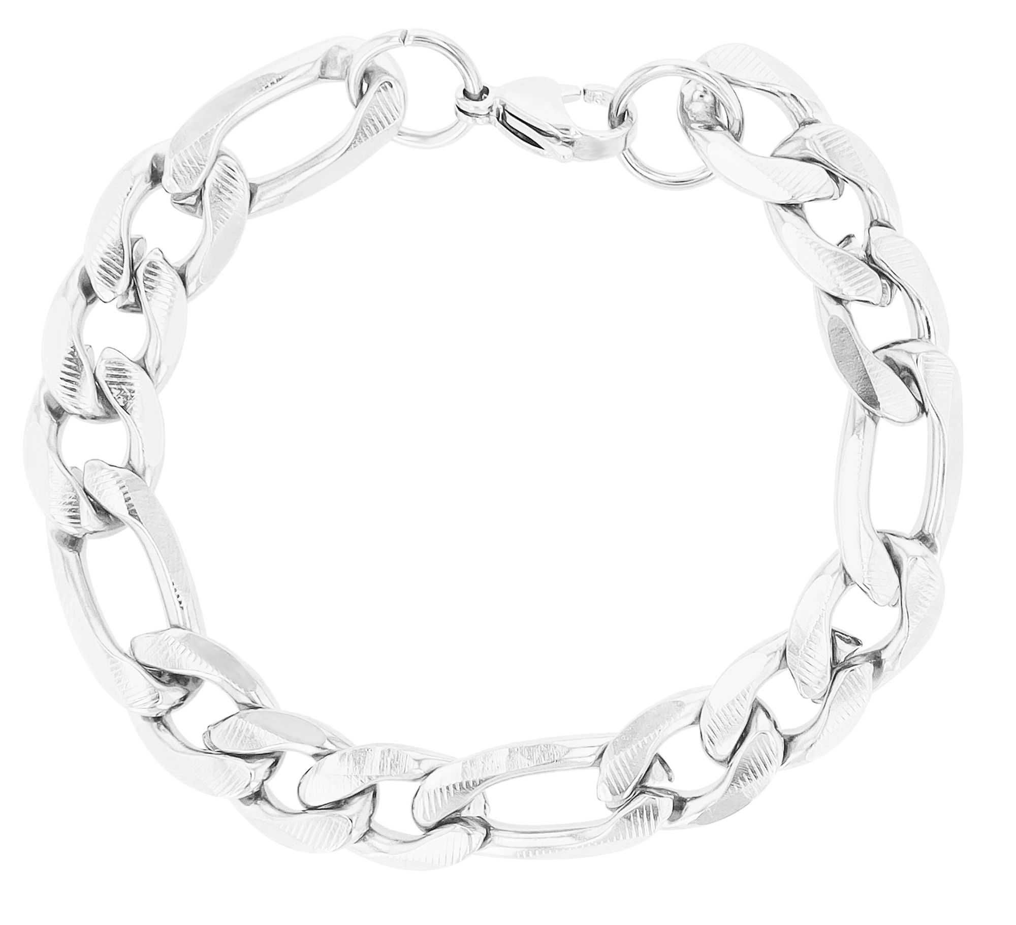 De Figaro armband van het merk Akzent is 21 cm lang, 11 mm breed en 3 mm dik - de perfecte combinatie van kracht en subtiliteit. Hij is gemaakt van roestvrij staal en belooft niet alleen een robuuste duurzaamheid, maar ook een tijdloze schoonheid die de tand des tijds zal doorstaan. De speciale rangschikking van de kettingelementen wordt gekenmerkt door een afwisselende opeenvolging van langwerpige en ovale schakels, wat de armband een opvallende en toch elegante charme geeft. Gesloten met een karabijnsluiting biedt de Figaro armband niet alleen een veilige houvast, maar is ook gemakkelijk te hanteren. De verschillende kleuropties waarin de armband verkrijgbaar is, maken het mogelijk om aan elke smaak te voldoen.