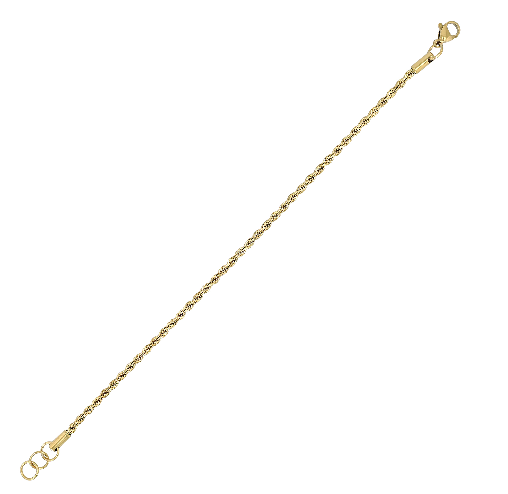 Deze goudkleurige armband van het merk Akzent heeft een koordpatroon en is gemaakt van roestvrij staal. Bij dit type ketting worden drie strengen ketting aan elkaar gekoppeld om de karakteristieke spiraalvorm te creëren. De elegante damesarmband kan geopend en gesloten worden met een praktische karabijnsluiting, die ook gemaakt is van roestvrij staal. De afmetingen zijn 18 cm lang en 2 mm dik. De armband heeft ook een verlengkettinkje van 2 cm zodat de lengte gevarieerd kan worden. De sieradenarmband is een mooi accessoire voor elke gelegenheid en een geweldig cadeau.