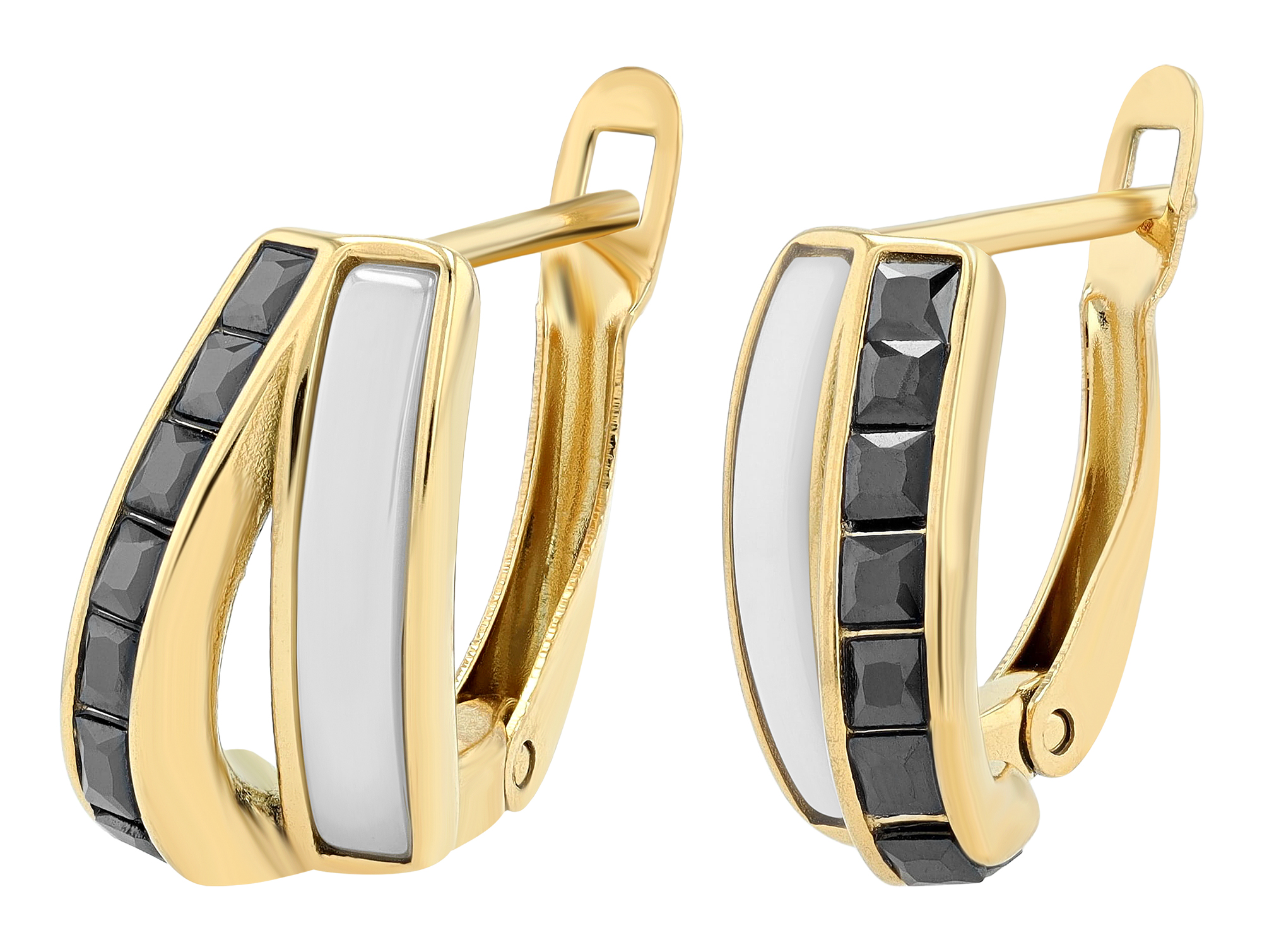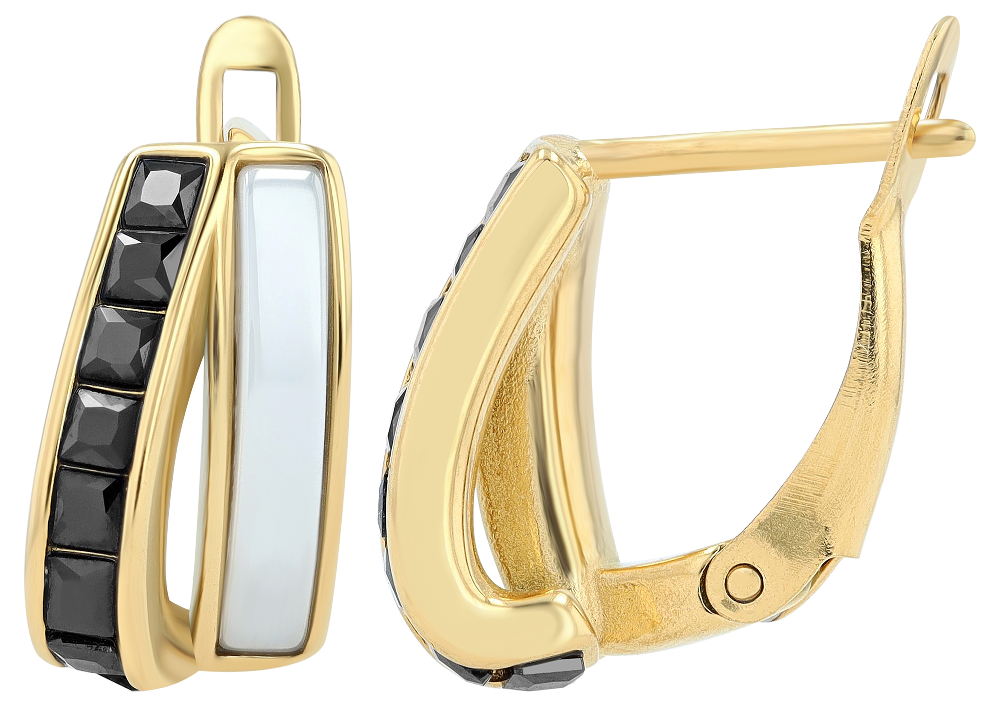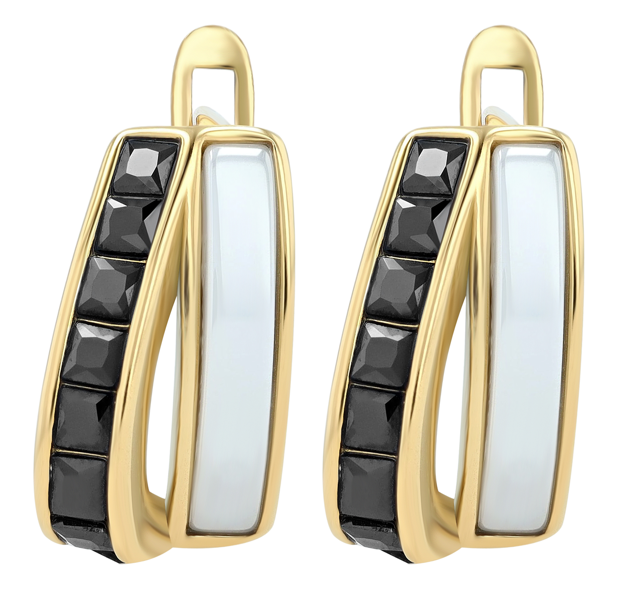 De vrouwelijke U-vormige scharnierende hoepeloorbellen zijn gemaakt van roestvrij staal en gedeeltelijk afgewerkt met keramiek. De oorbellen zijn verdeeld per kleur, waarbij de ene helft bedekt is met gekleurd keramiek en de andere helft versierd is met zes fonkelende zirkonia steentjes. De oorbellen worden in het midden visueel onderbroken door een dunne uitsparing. De sluiting is een praktische scharniersluiting die het aan- en uittrekken vergemakkelijkt. De maat resulteert uit een lengte van 15 mm, een breedte van 9 mm en een dikte van 6 mm. Als alledaags accessoire of voor speciale gelegenheden, deze hoepeloorbellen zijn perfect voor iedereen die van stijlvolle elegantie houdt.