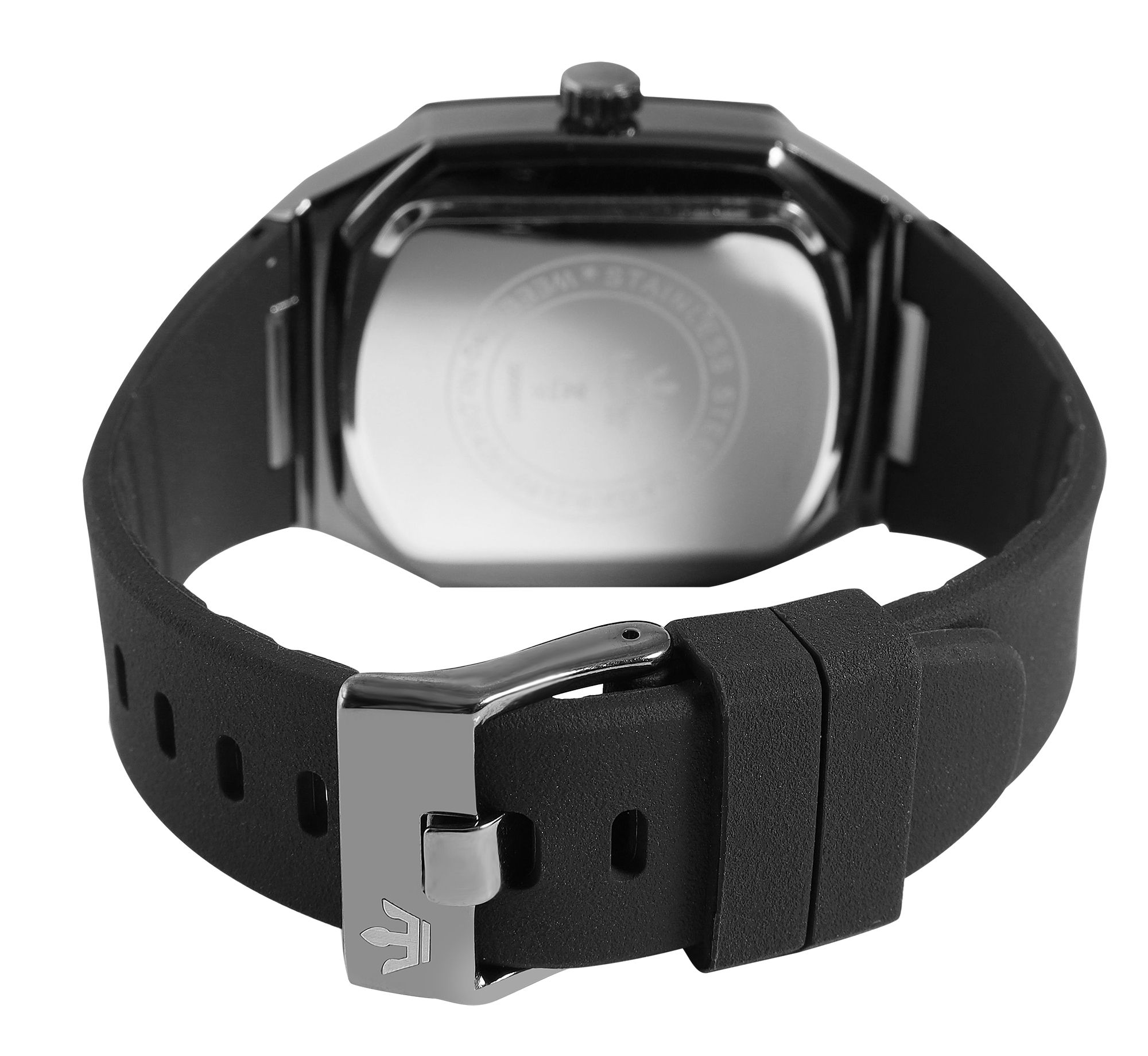 De comfortabele siliconen band met gesp zorgt voor een goede pasvorm en comfortabel dragen.
