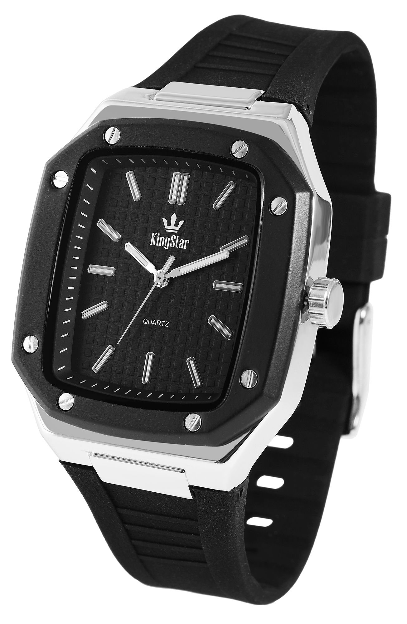 "Dozer" King Star herenhorloge met siliconen band, zwart/zilverkleurig