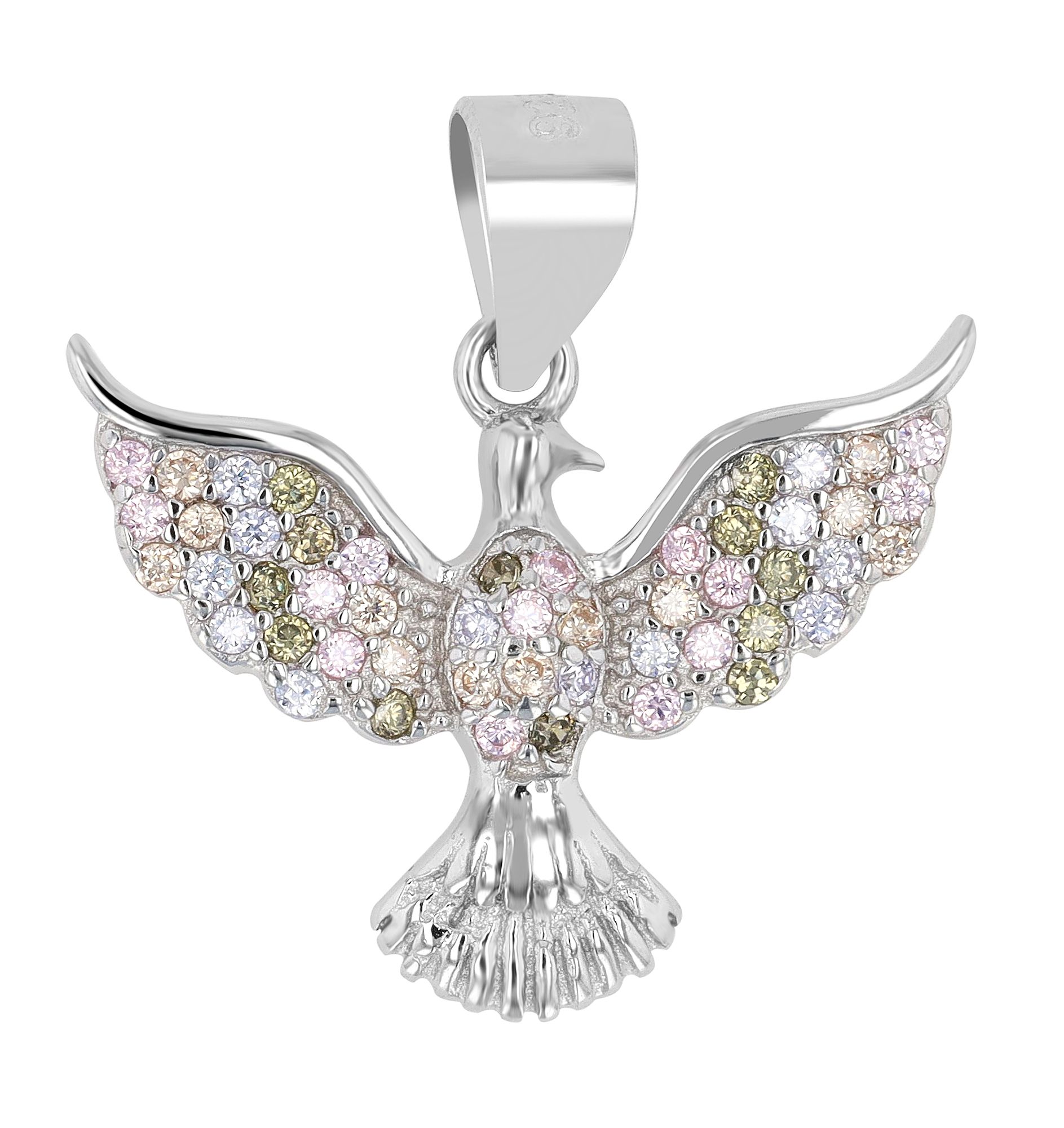 Productinformatie "Duif hanger 925 Sterling zilver "Zezilia" met roze zirkonia, gerhodineerd"