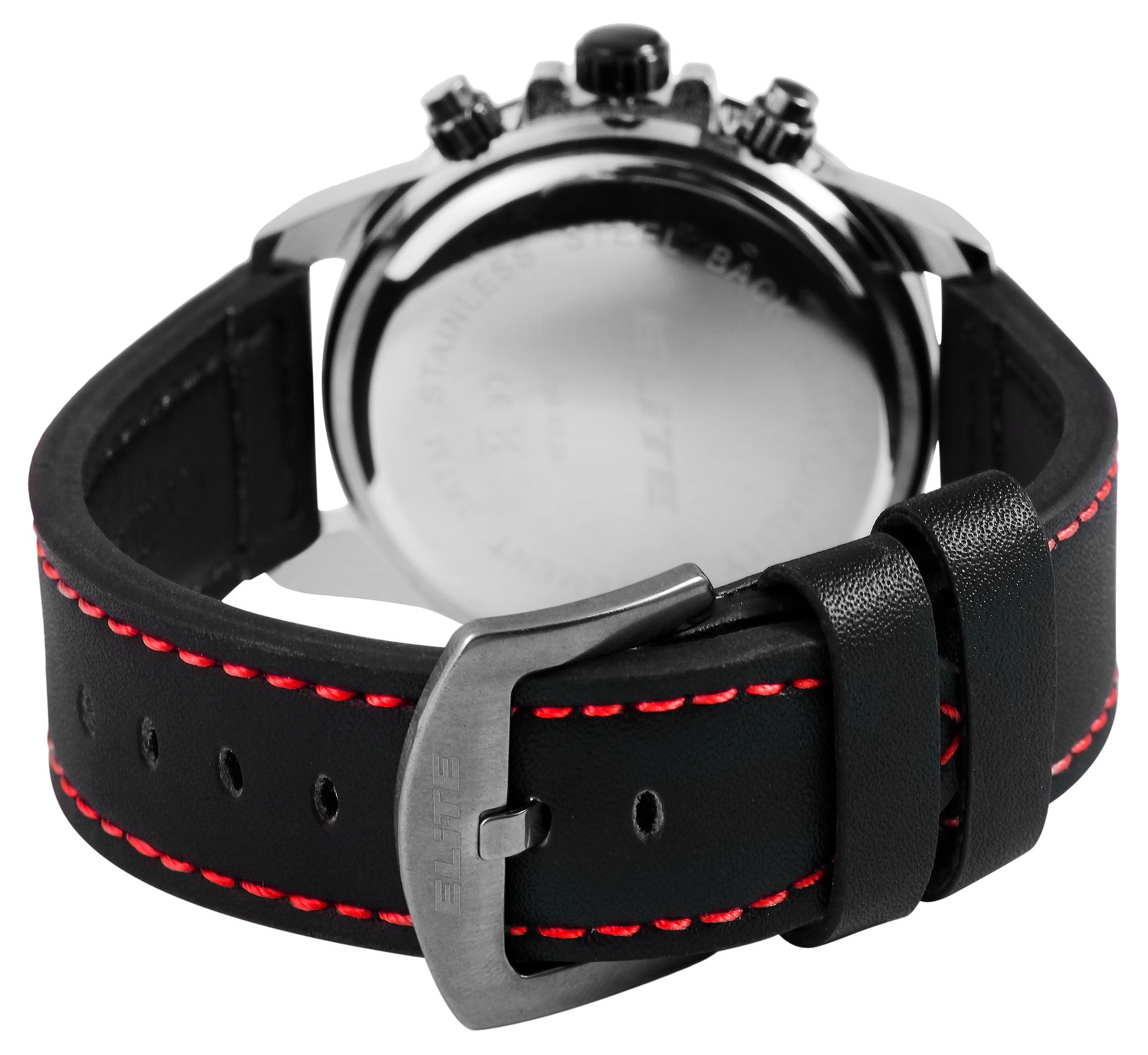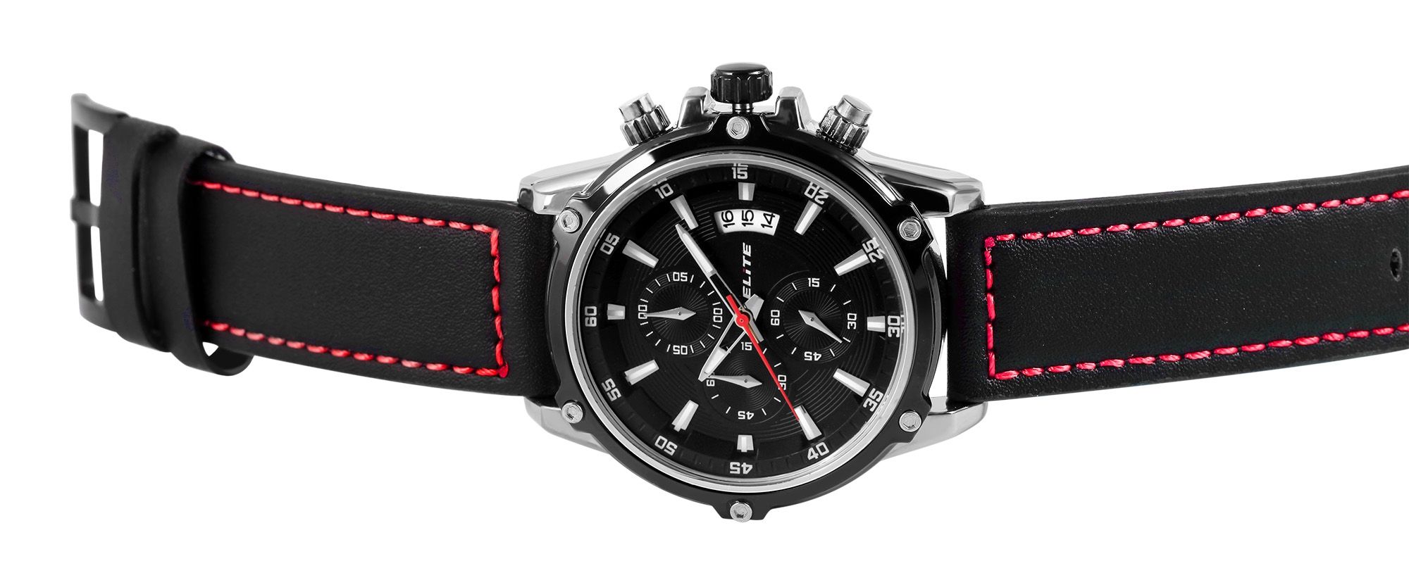 ELITE Herrenchronograph mit Echtlederband, schwarz/rot