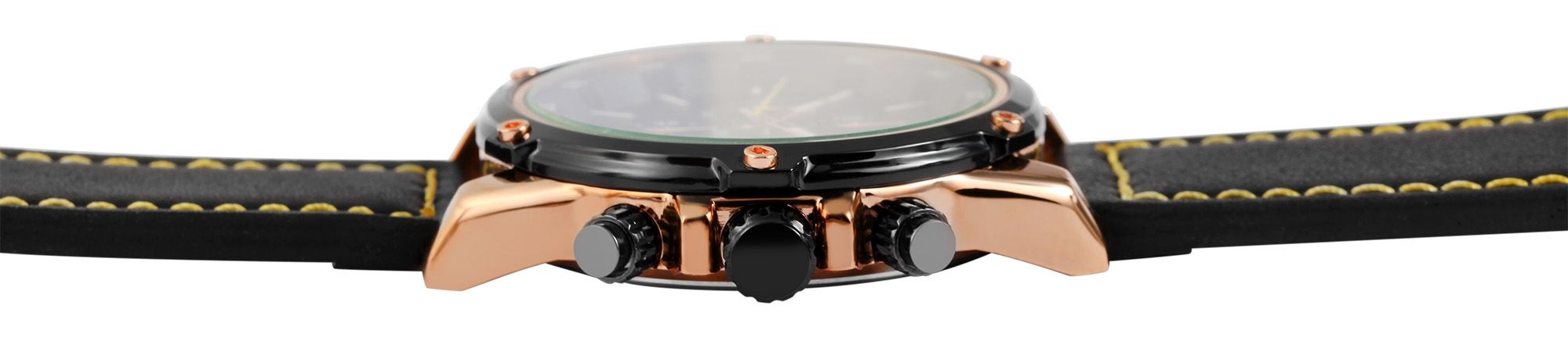 ELITE herenchronograaf met echt lederen band, zwart/geel