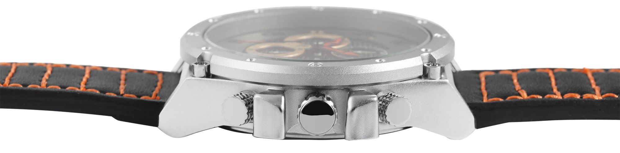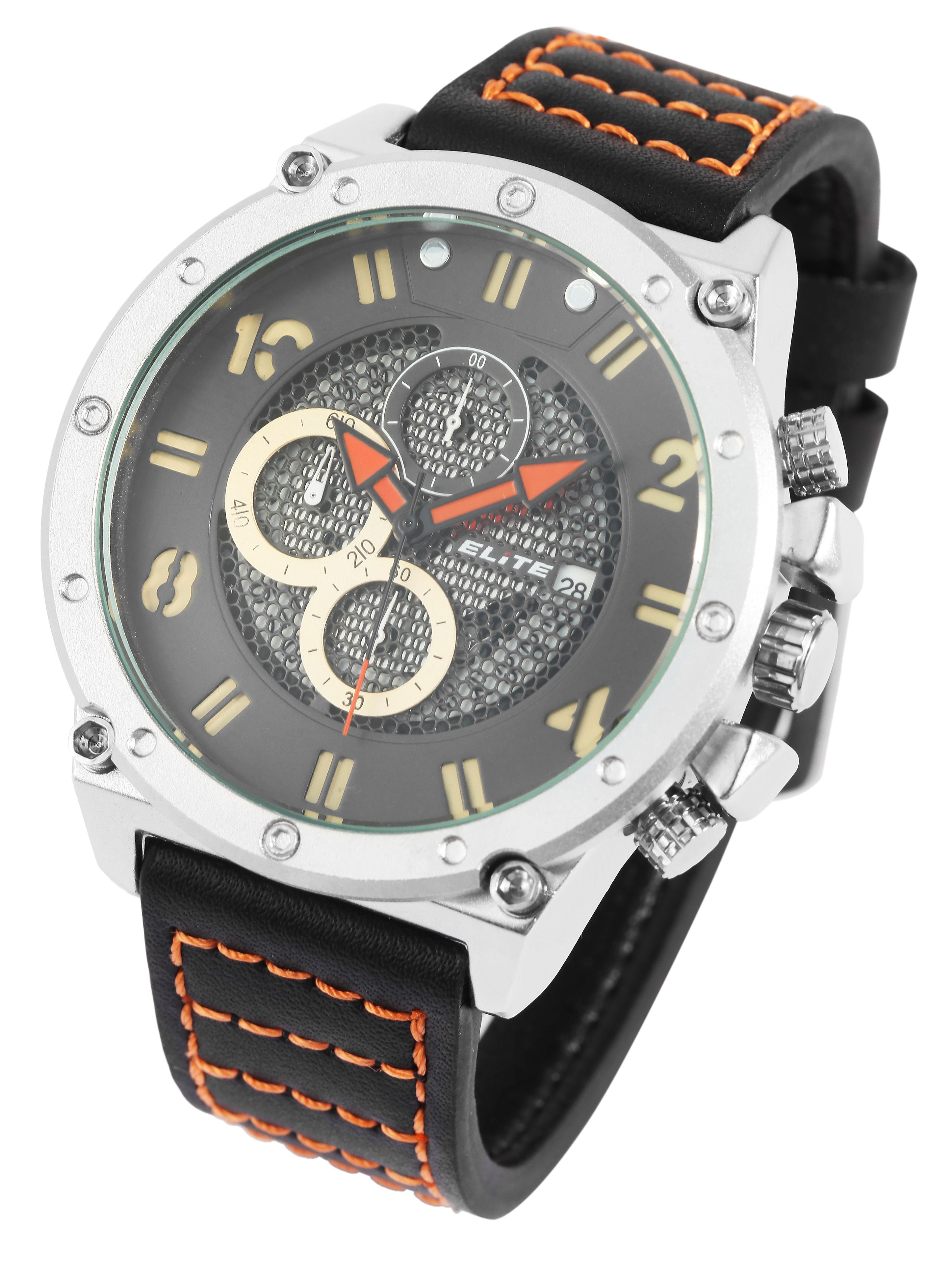 ELITE herenchronograaf met echt lederen band, zwart/zilverkleurig/oranje