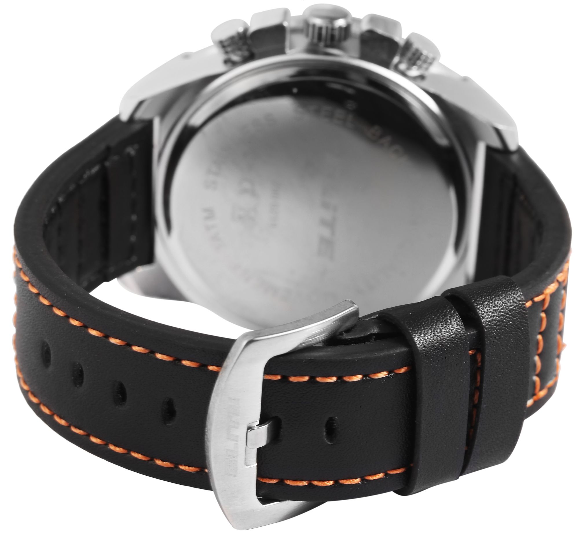 Productinformatie "ELITE herenchronograaf met echt lederen band, zwart/zilverkleurig/oranje"
