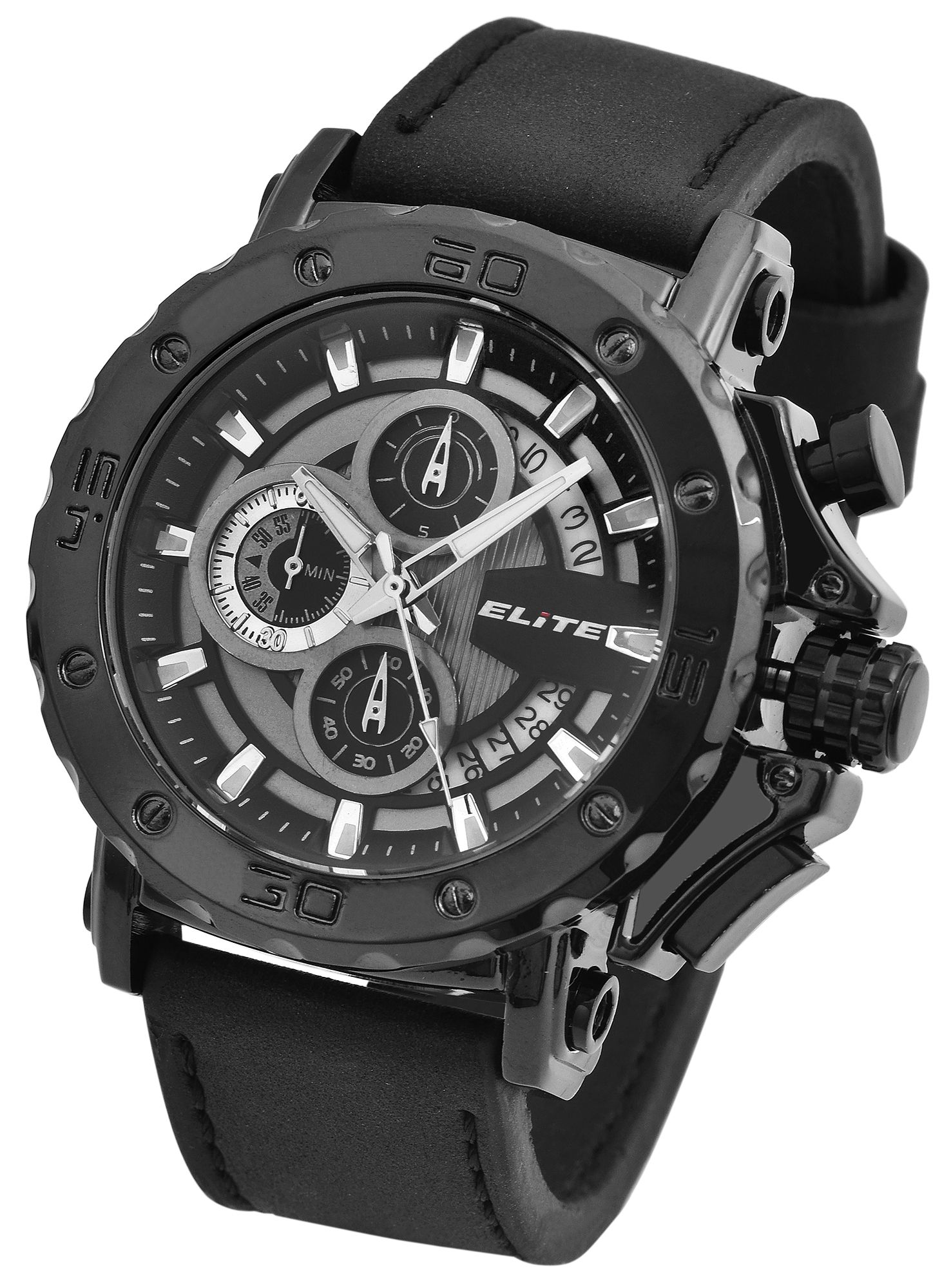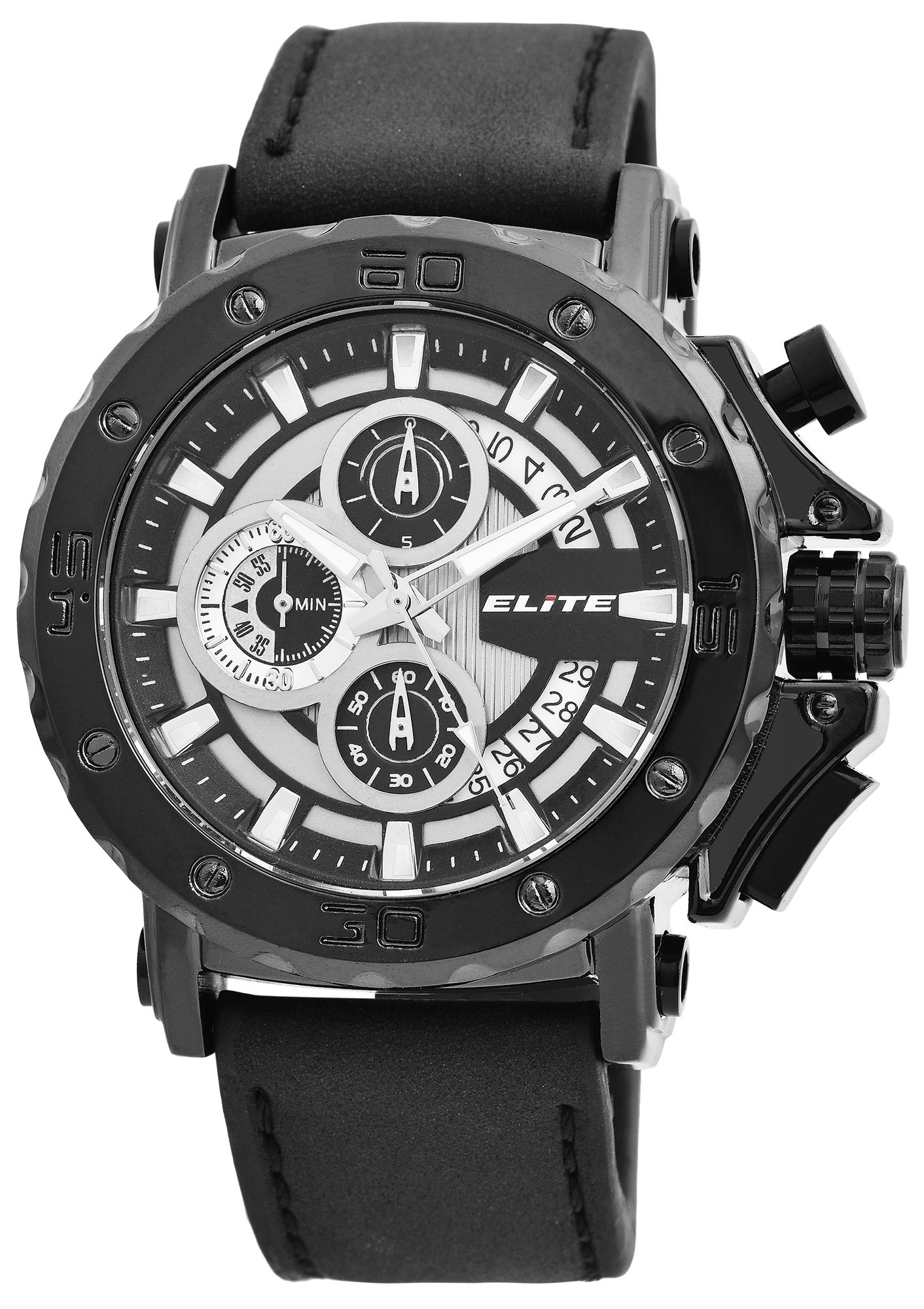 ELITE herenchronograaf met imitatieleren band in zwart