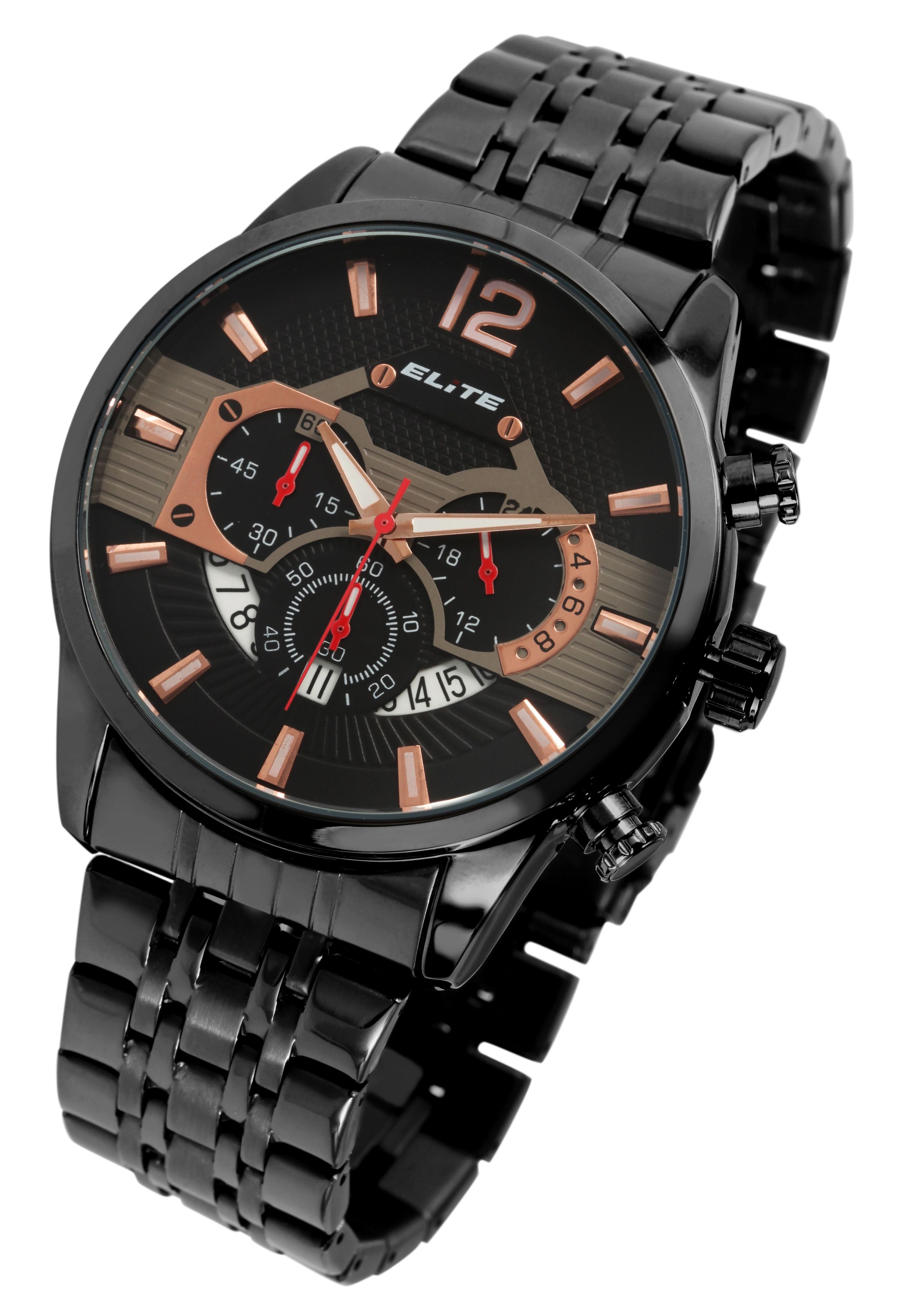 ELITE herenchronograaf met roestvrijstalen armband, zwart