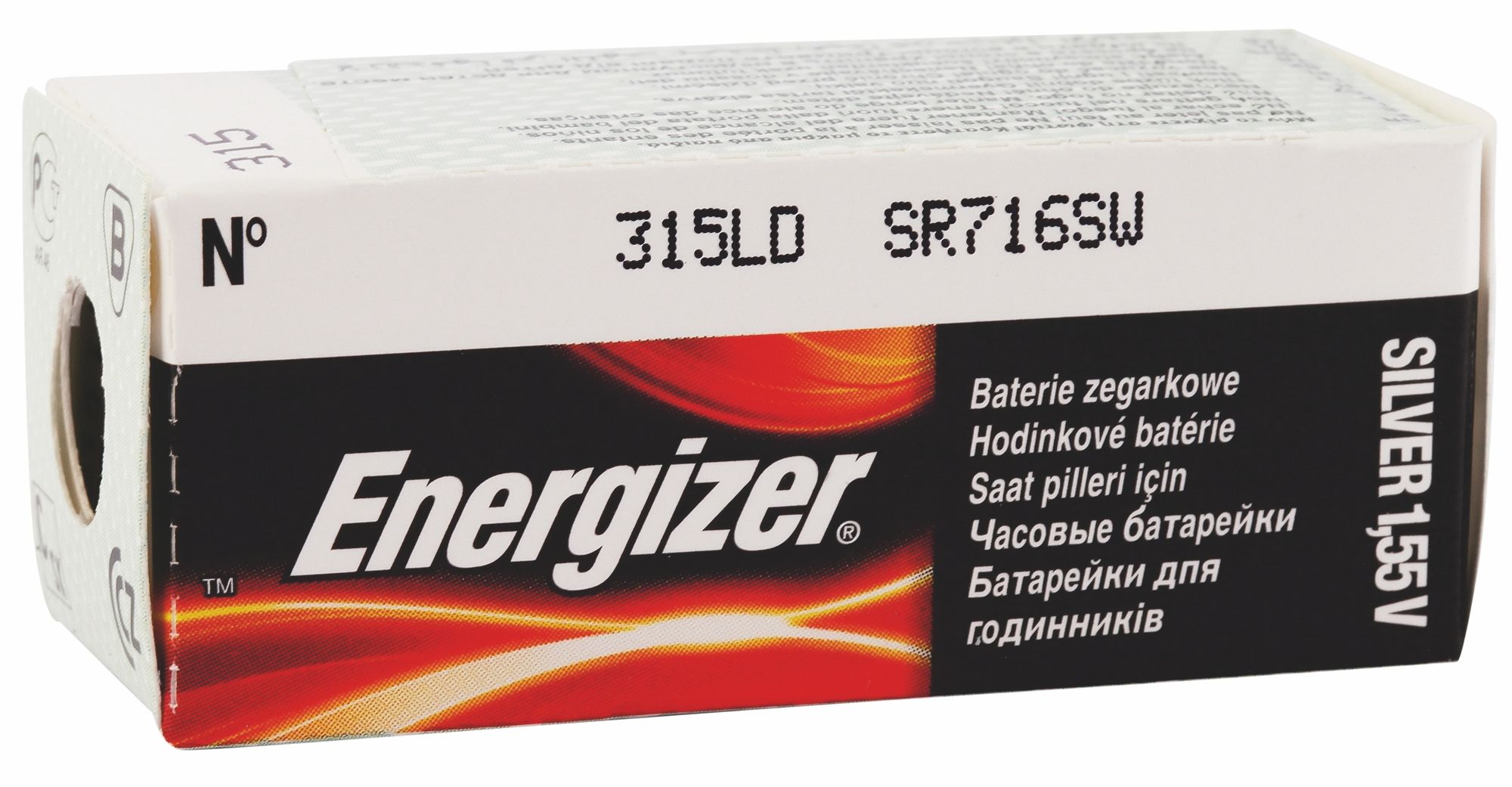 Energizer merk knoopcellen nr. 315 voor horloges met 0% kwik in blisterverpakking van 10, individueel verpakt. Verschillende maten voor verschillende uurwerken. De elektrische spanning voor elke batterij is 1,55 V.