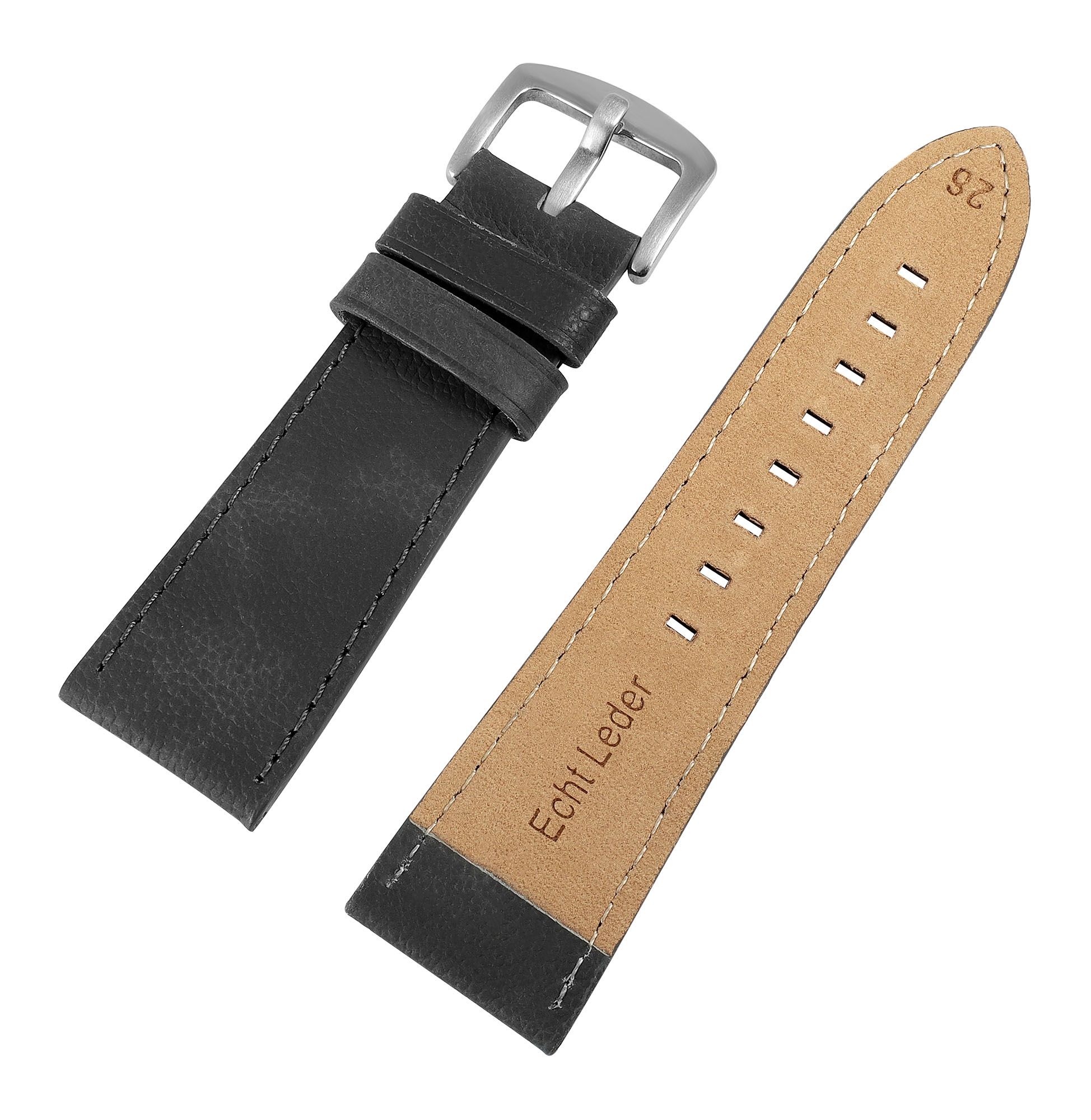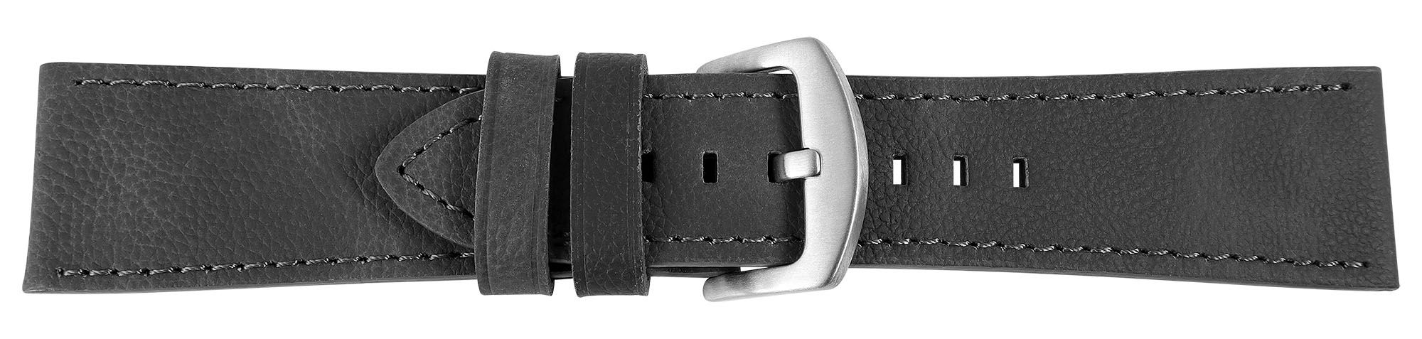 Productinformatie "Echt lederen horlogeband "super-soft", donkergrijs, gestikt, 22 mm"