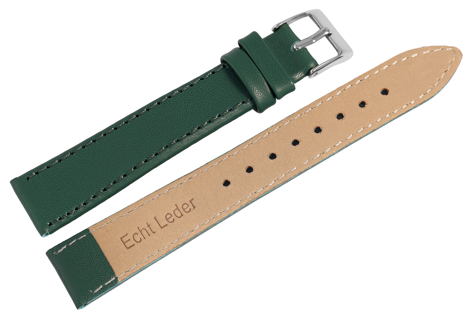 Productinformatie "Echt lederen horlogeband "super-soft", groen, stiksel, 16 mm"
