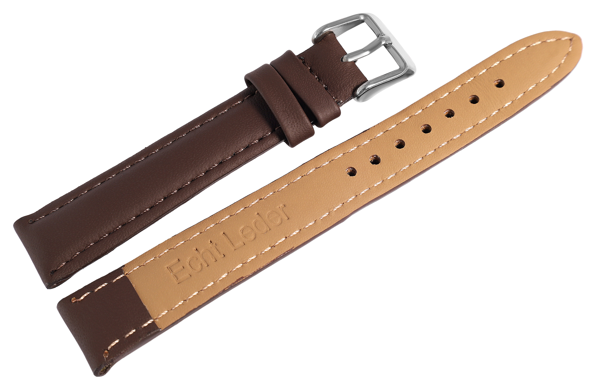 Deze tijdloze horlogeband van echt leer in donkerbruin is de ideale basisvervanging voor elke horlogewinkel en voor dagelijks gebruik.