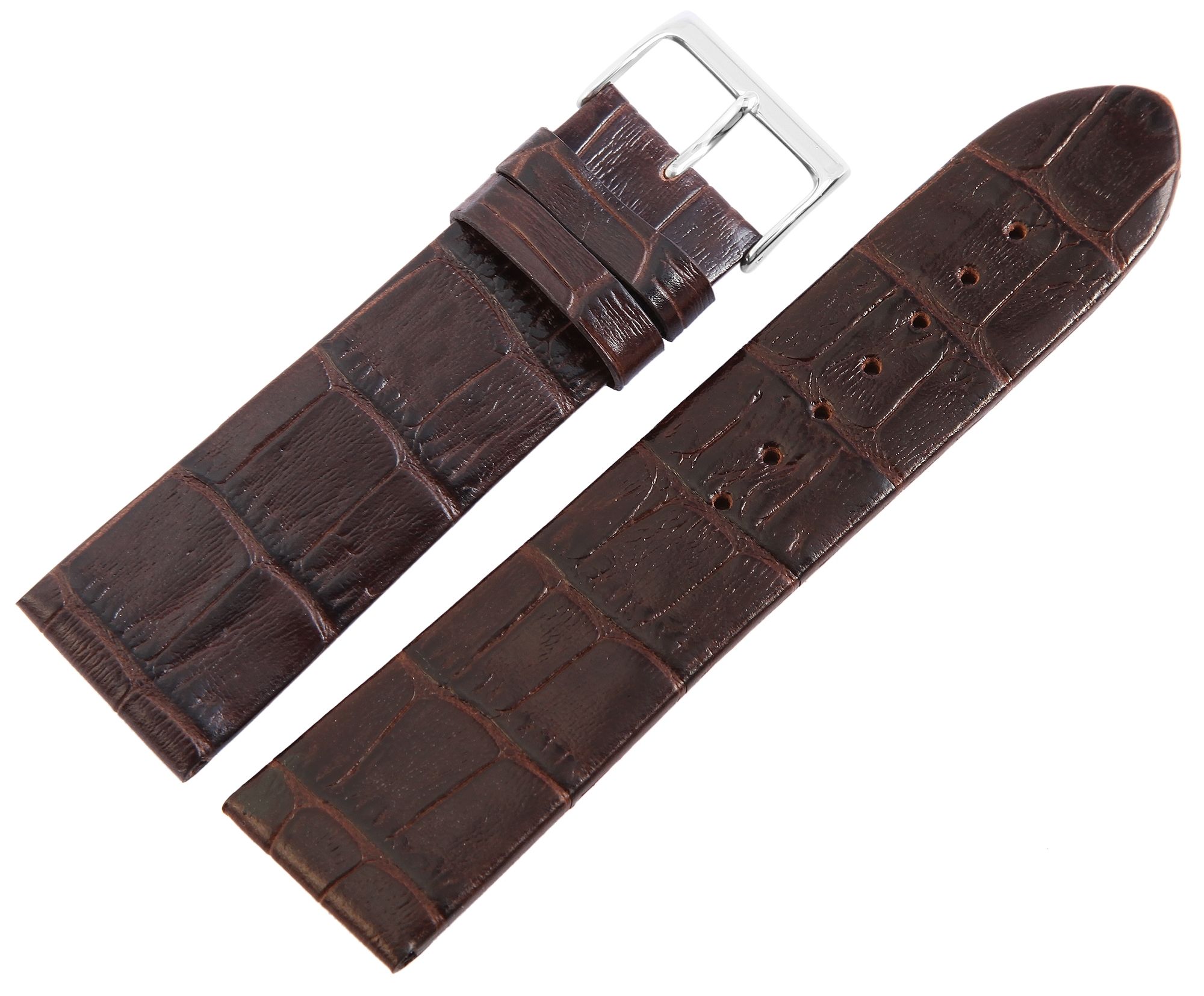 Productinformatie "Echt leren horlogeband, donkerbruin, krokodillenlook, 24 mm"