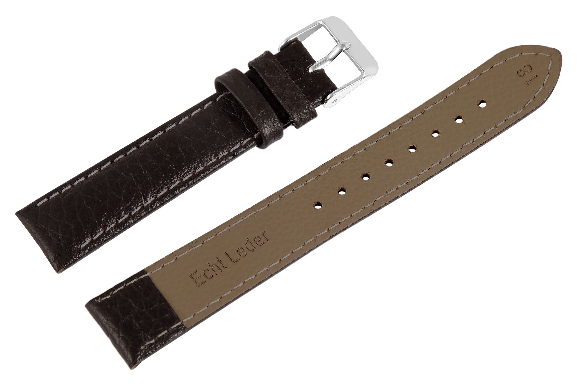 Productinformatie "Echt leren horlogeband, donkerbruin, witte stiksels, 24 mm"