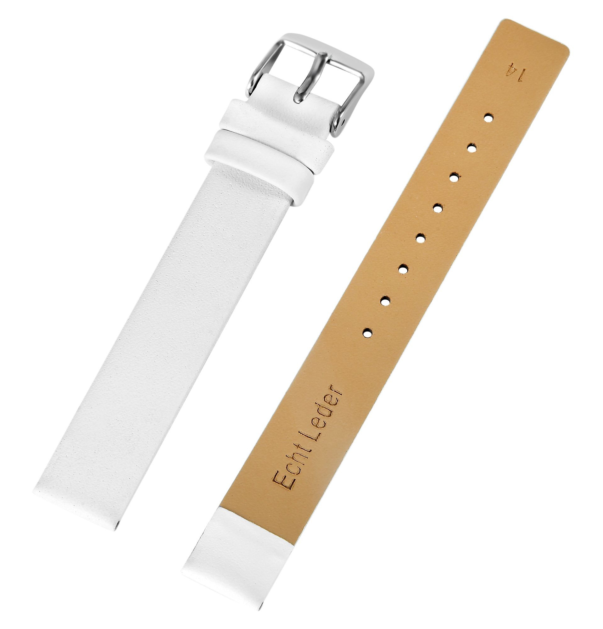 Productinformatie "Echt leren horlogeband, naadloos, wit, 14 mm"