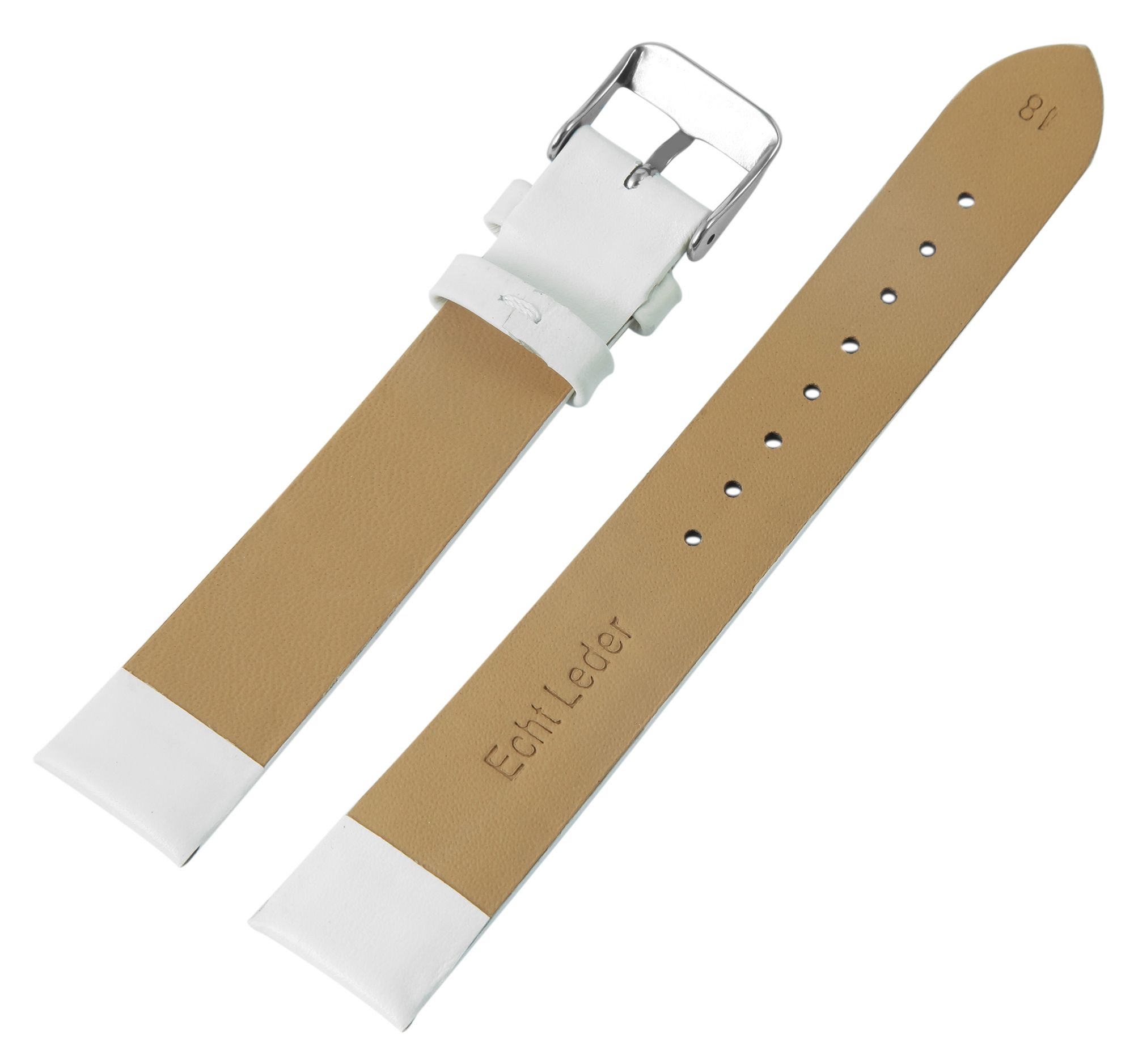 Productinformatie "Echt leren horlogeband, naadloos, wit, 16 mm"