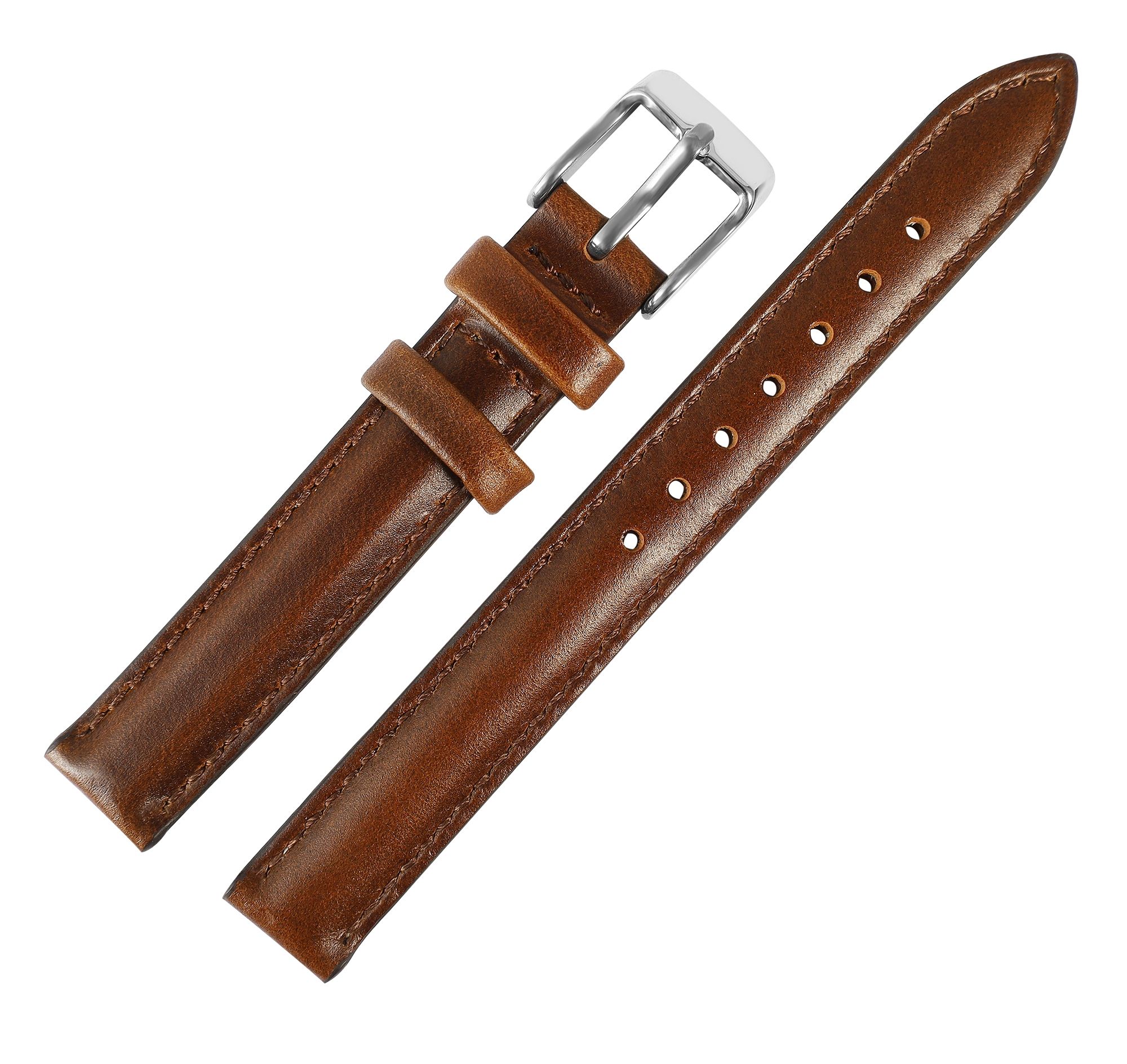 Deze bruine horlogeband van echt leer geeft je horloge een tijdloze en elegante look. Het gladde, glanzende oppervlak en de nauwkeurige bruine stiksels zorgen niet alleen voor een goede duurzaamheid, maar ook voor een stijlvolle look.
