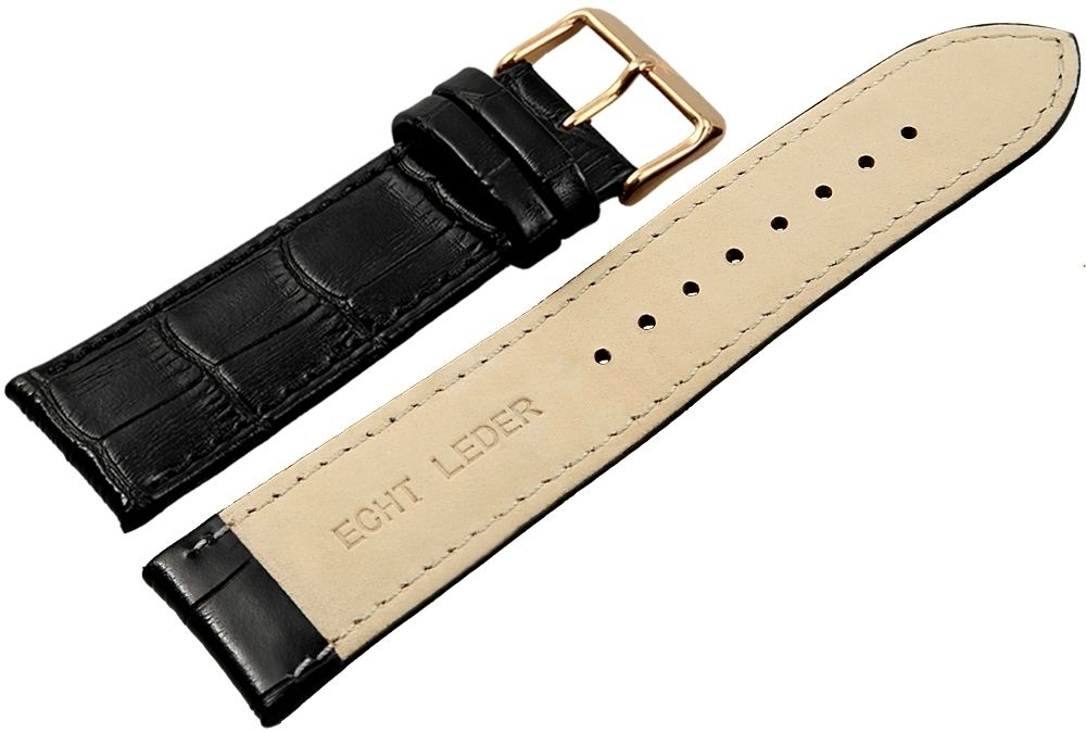 Productinformatie "Echt leren horlogeband, zwart, krokodillenlook, 24 mm"