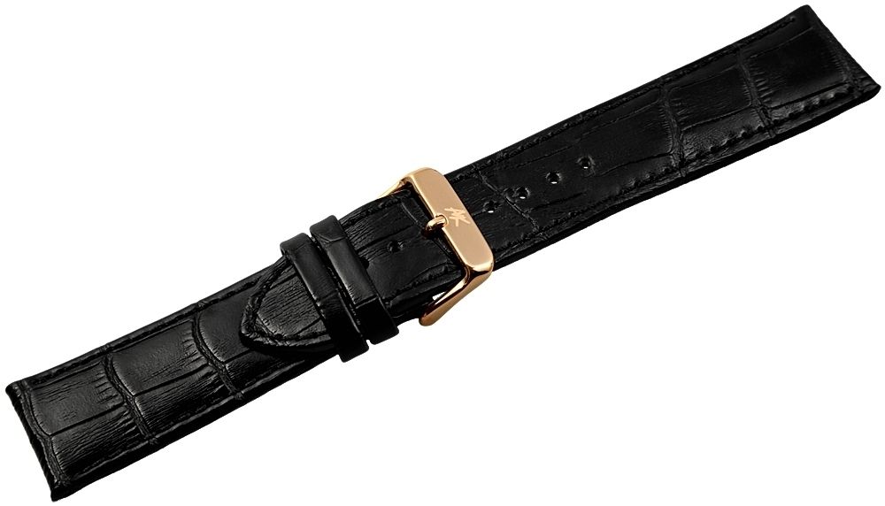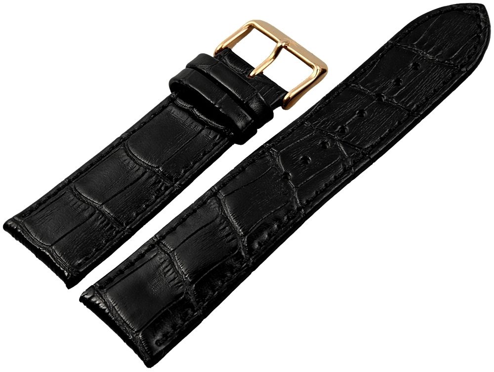 Echt leren horlogeband, zwart, krokodillenlook, 24 mm