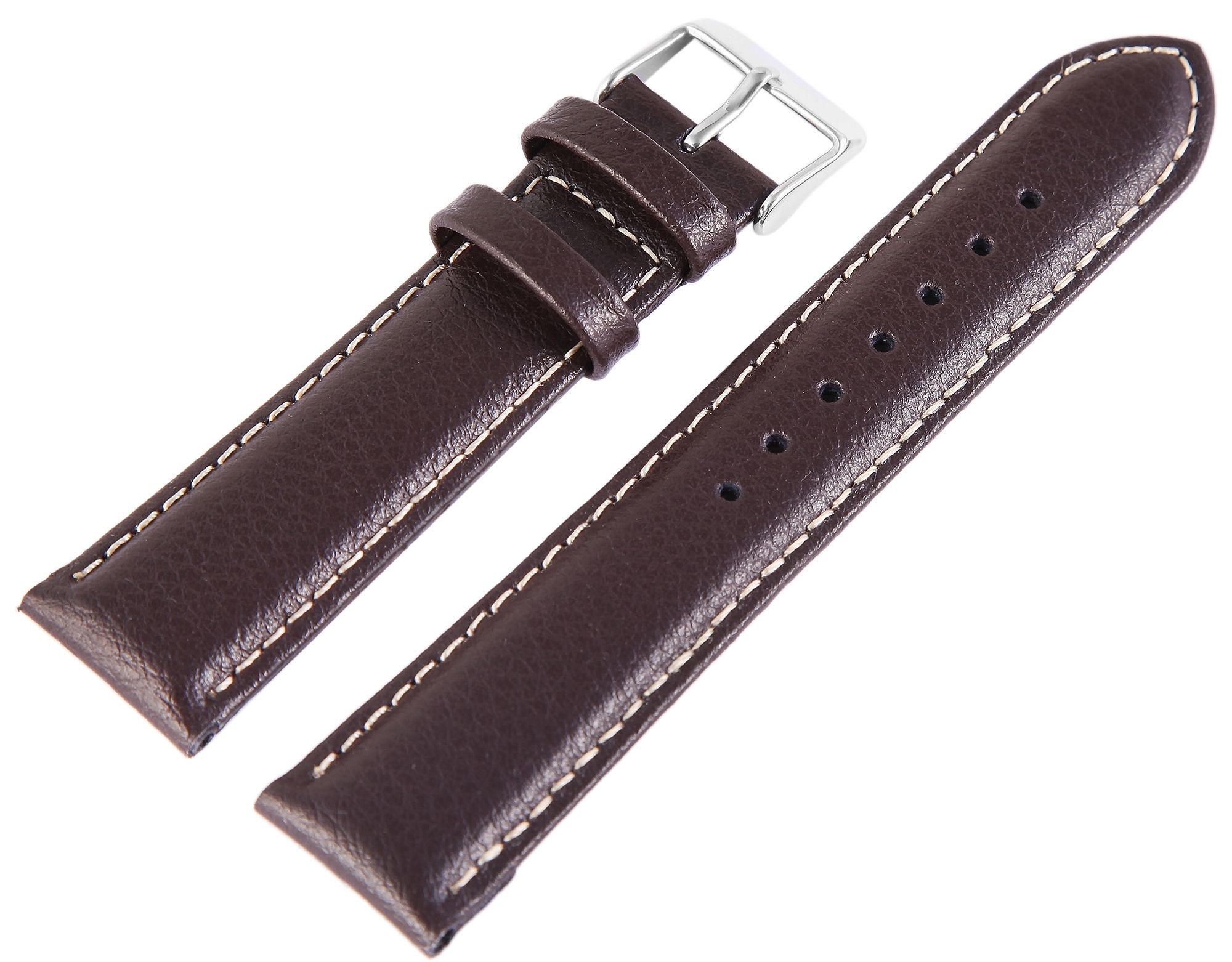 Productinformatie "Echtleder-Uhrenarmband, dunkelbraun, weiße Naht, 20 mm"