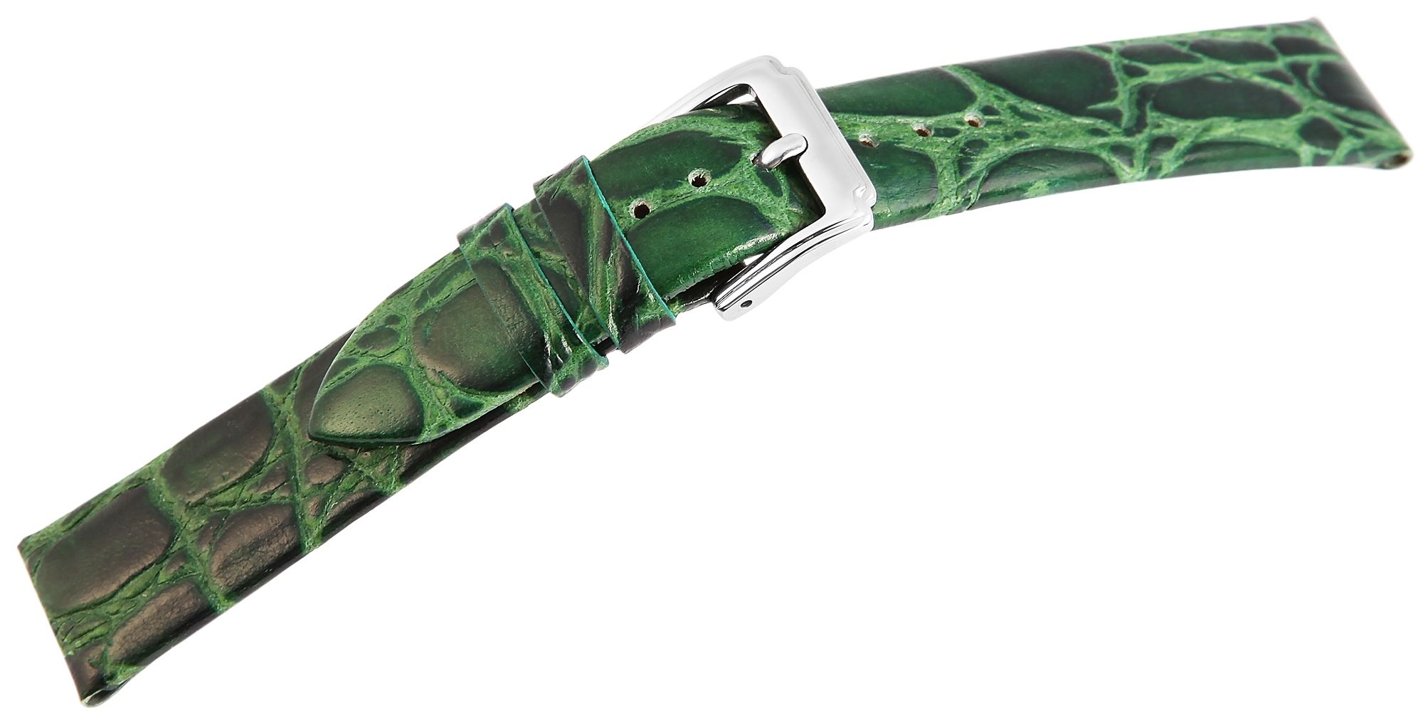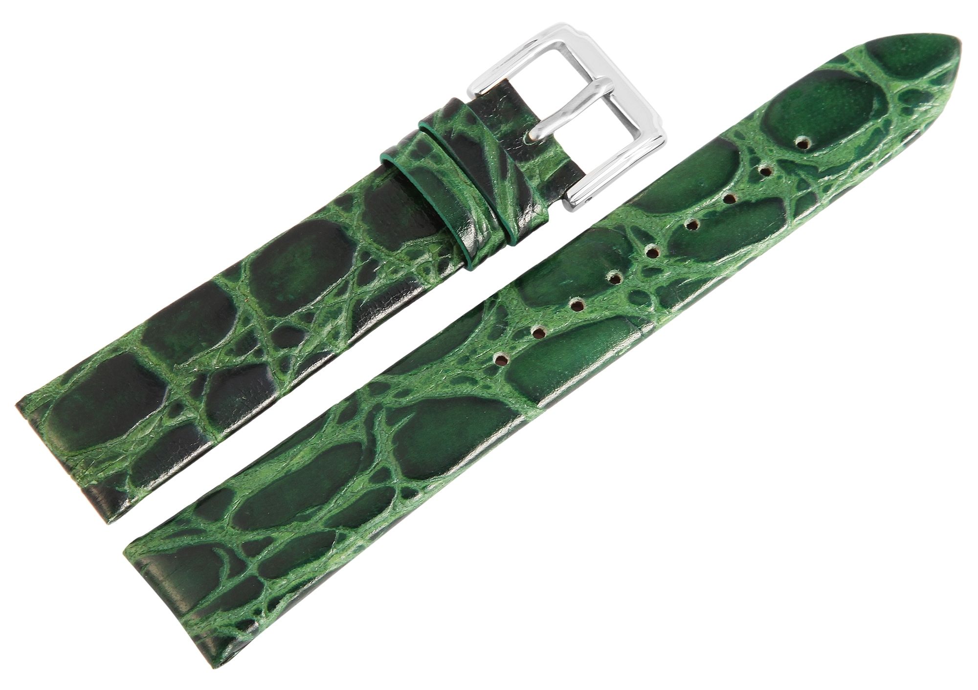 Productinformatie "Echtleder-Uhrenarmband, dunkelgrün, Krokooptik, 16 mm"