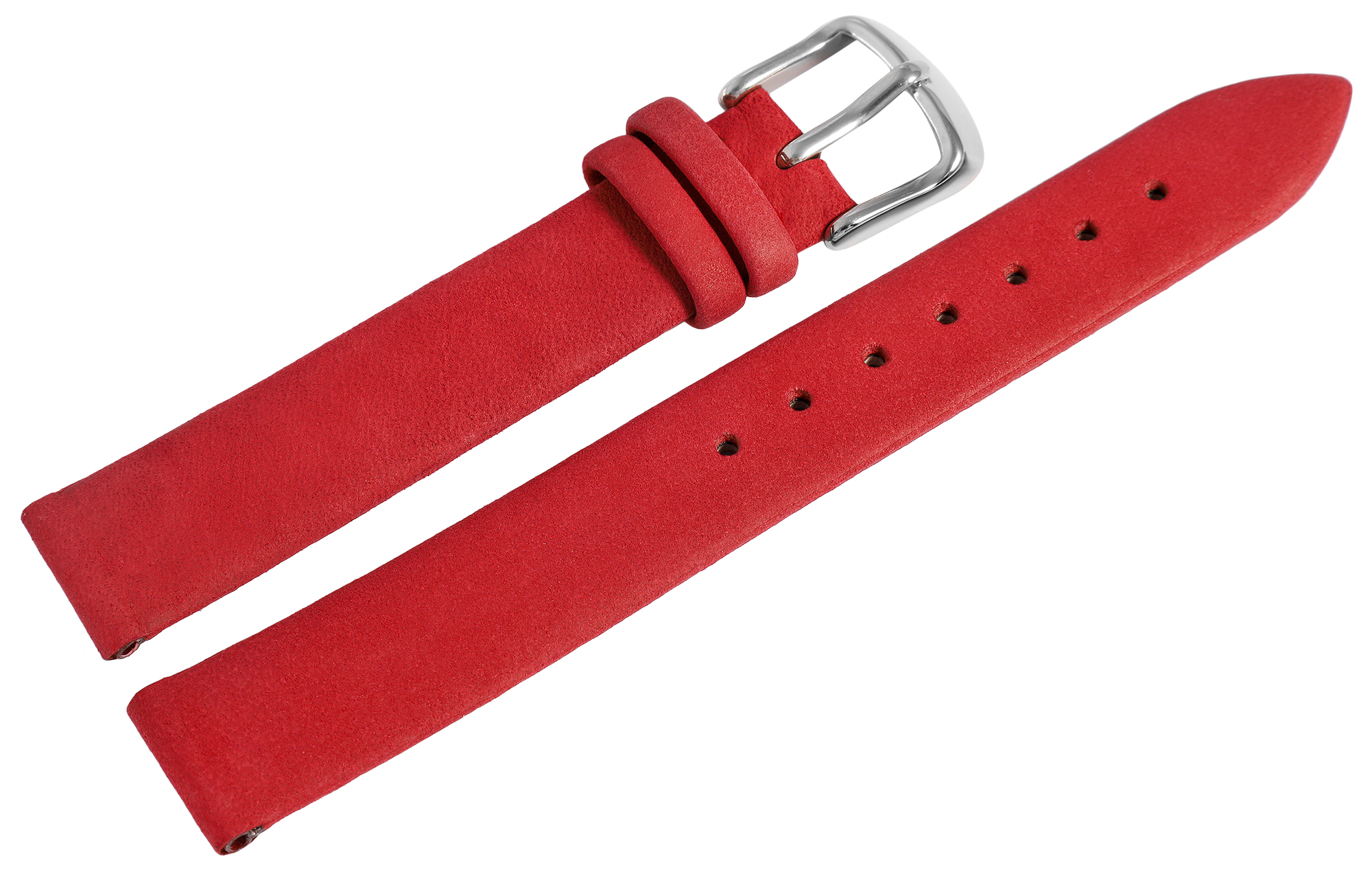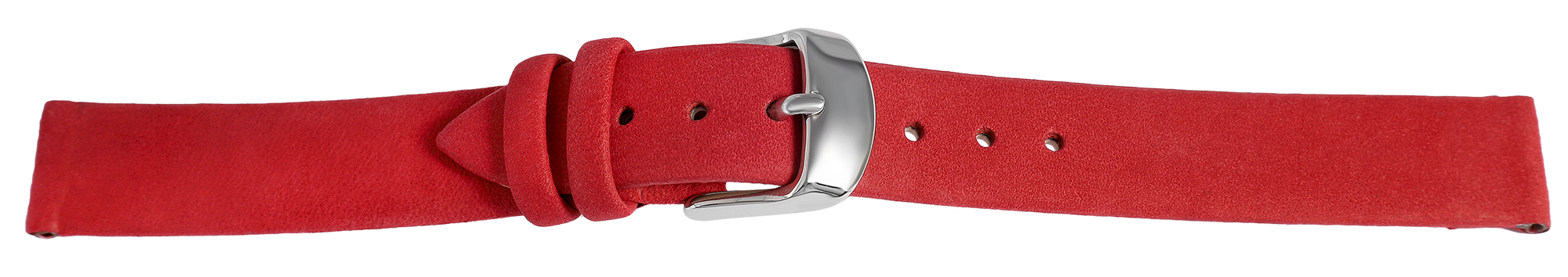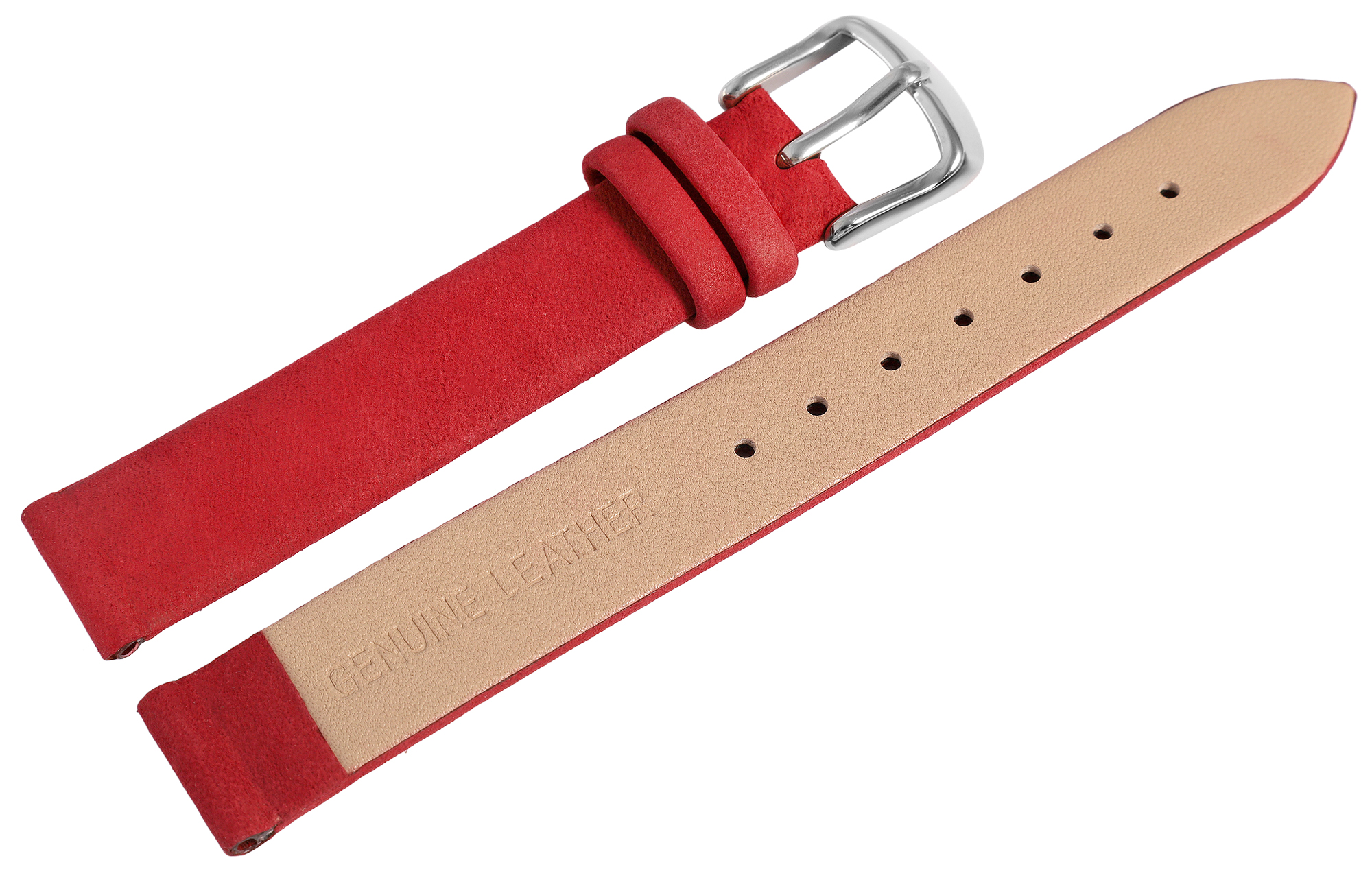 De donkerrode horlogeband van echt leer heeft een lugbreedte van 14 mm. Het heeft een licht geruwd oppervlak en is licht gewatteerd zodat het ongeveer 3 mm hoog is. De totale lengte van het horlogebandje is 19,5 cm. De lengte bestaat uit het 11 cm lange gatgedeelte en het 8,5 cm lange slotgedeelte. De vervangende armband kan worden geopend en gesloten met een zilverkleurige gesp.
