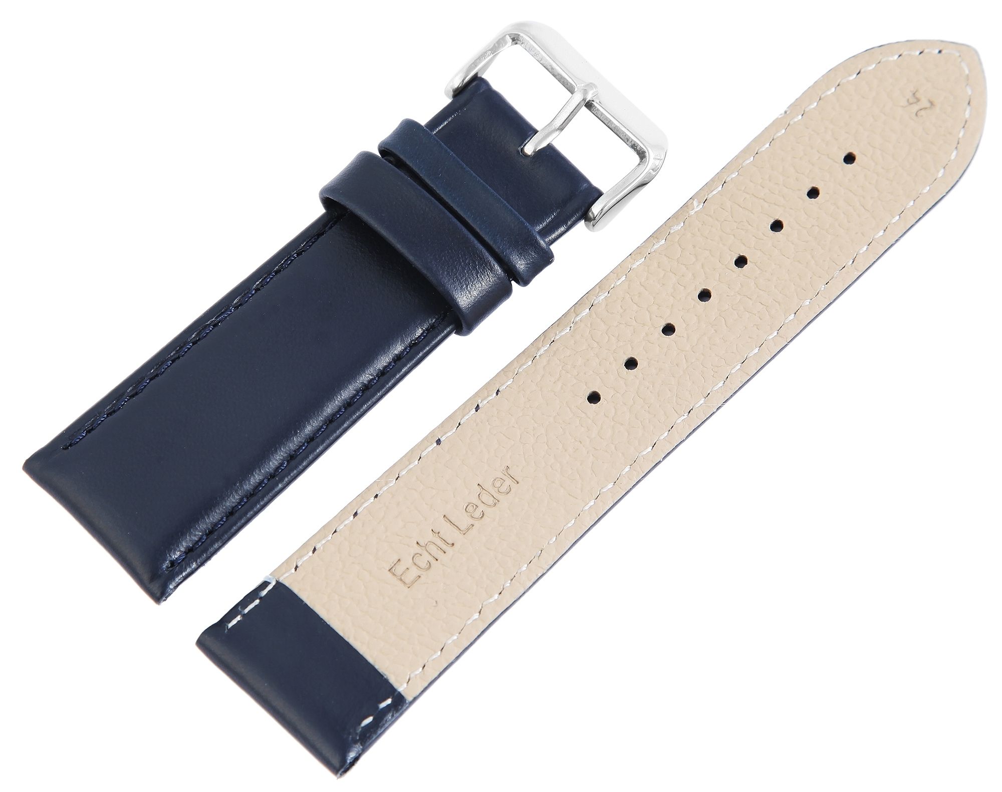 Productinformatie "Echtleder-Uhrenarmband, gepolstert, dunkelblau, 24 mm"