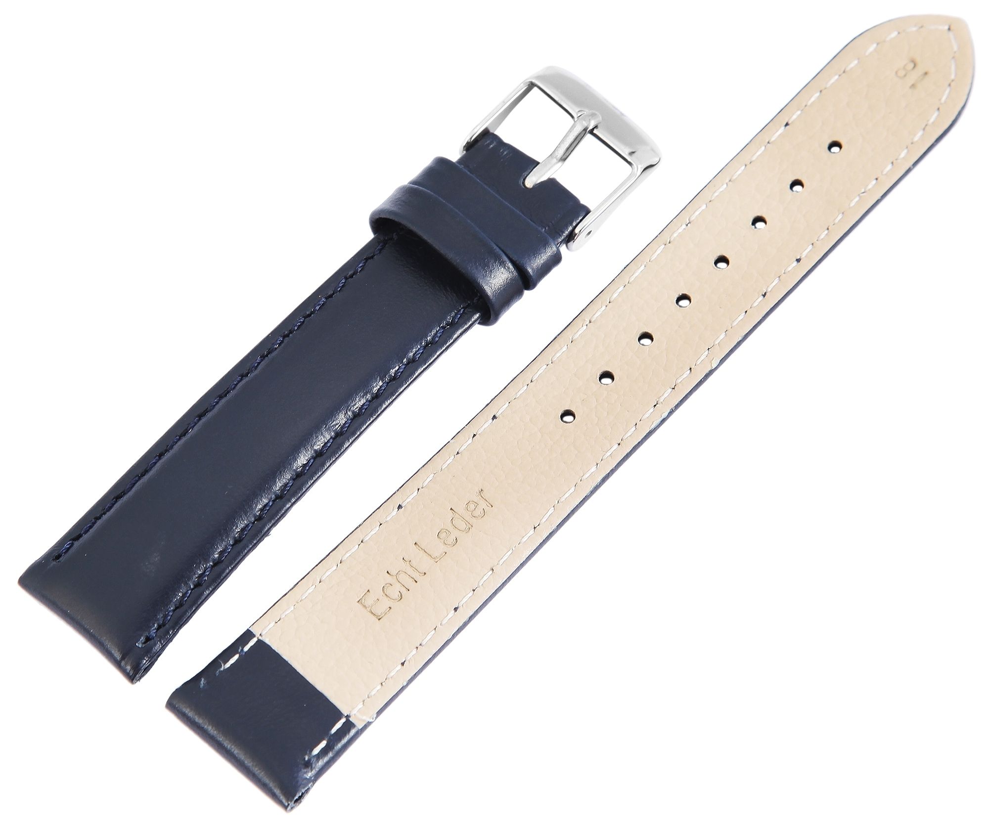 Productinformatie "Echtleder-Uhrenarmband, gepolstert, dunkelblau, 18 mm"