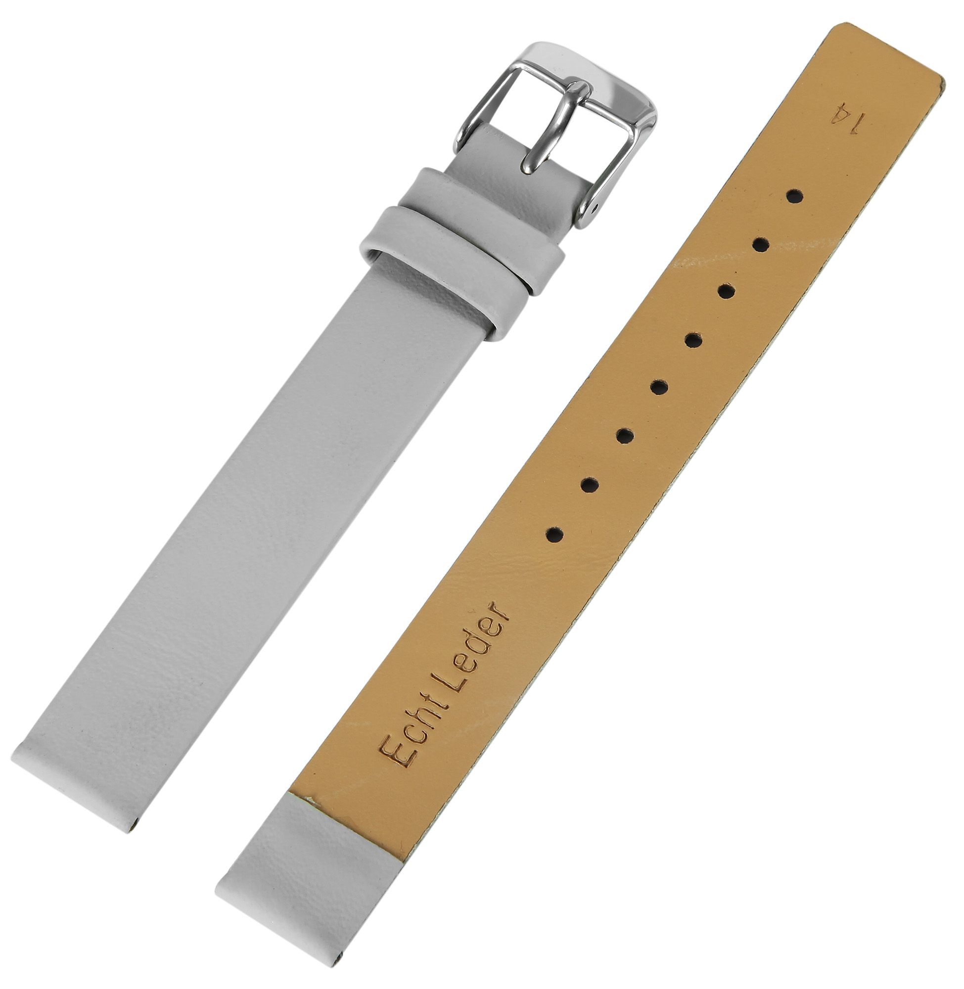 Productinformatie "Echtleder-Uhrenarmband, nahtlos, grau, 14 mm"