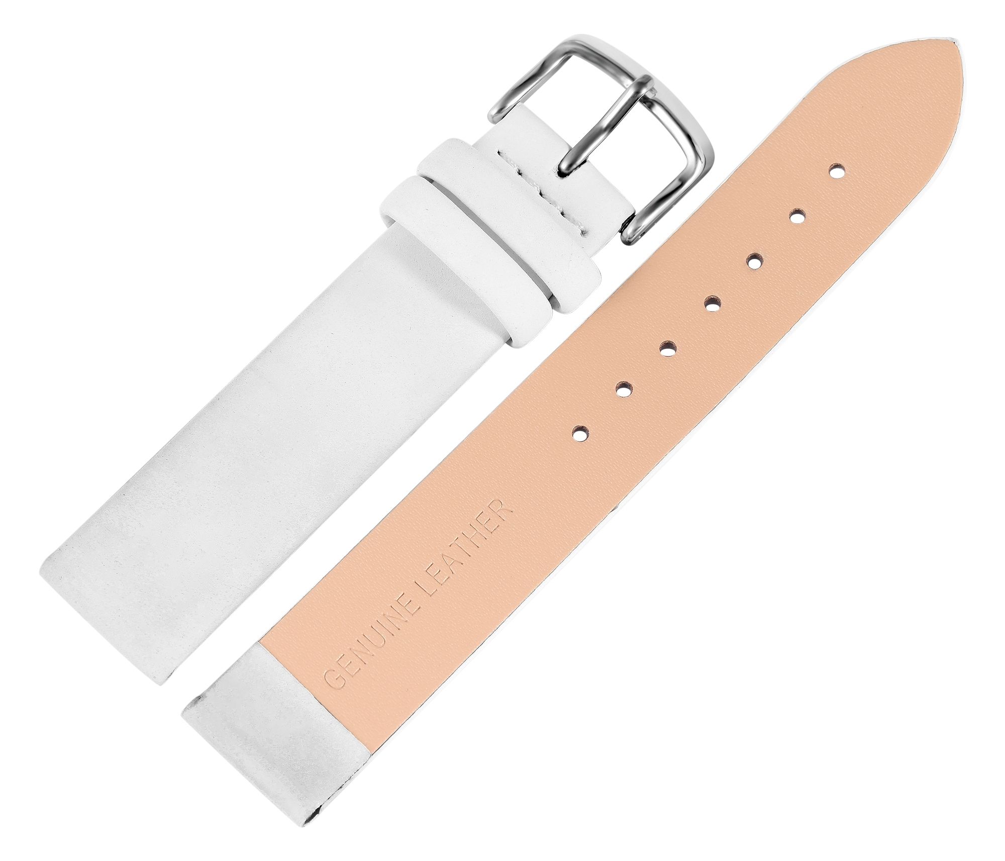 Productinformatie "Echtleder Uhrenarmband, nahtlos, weiß, flach, 12 mm"