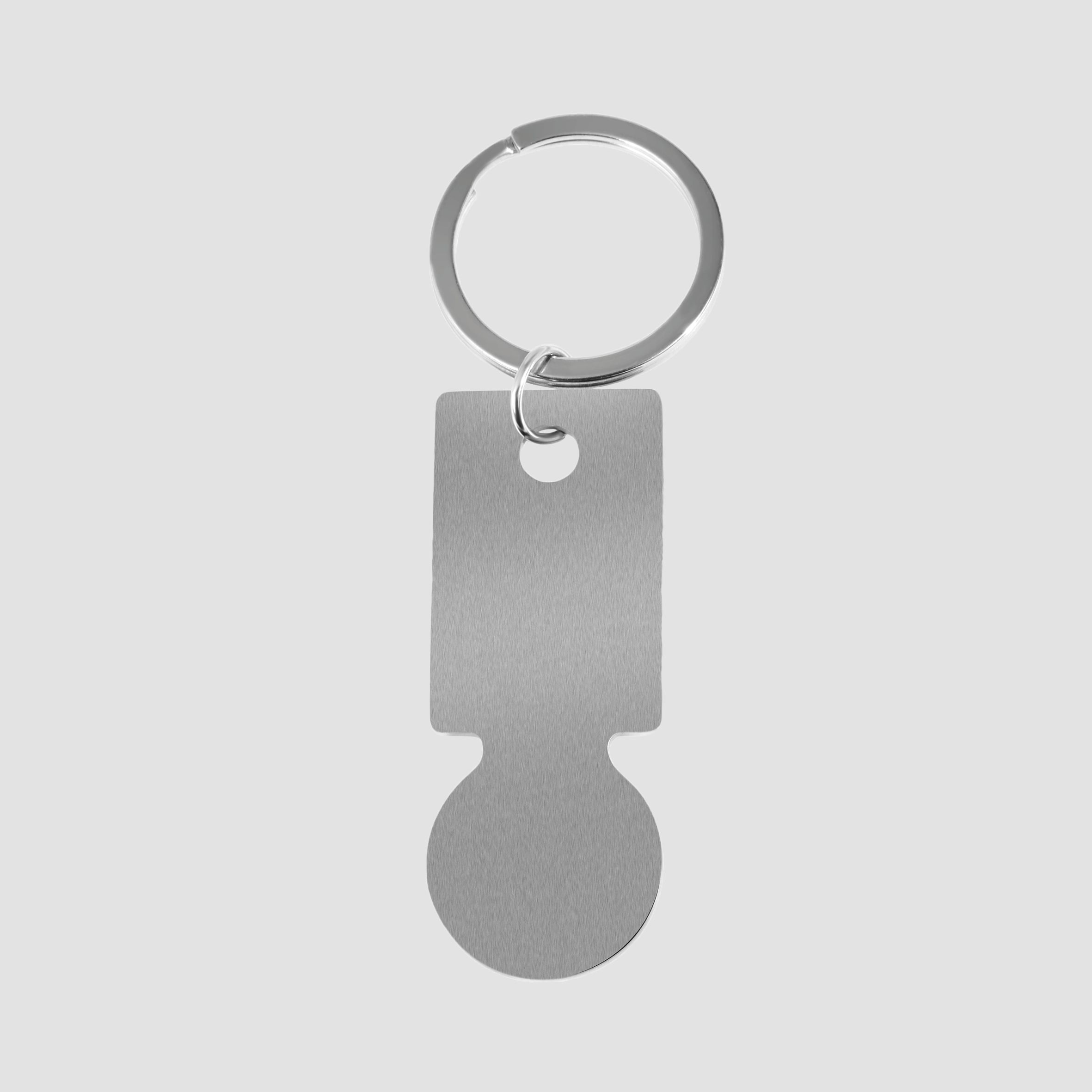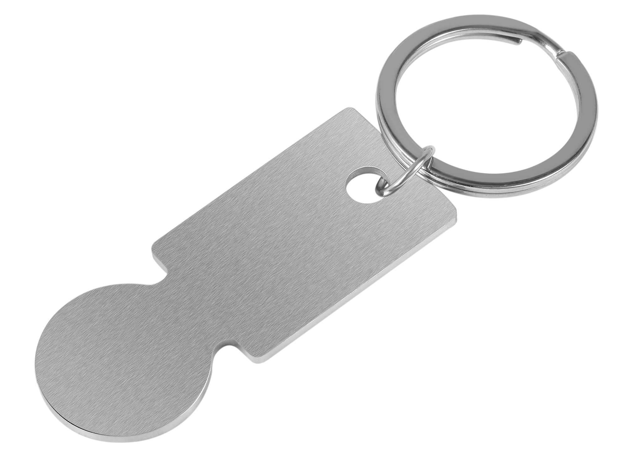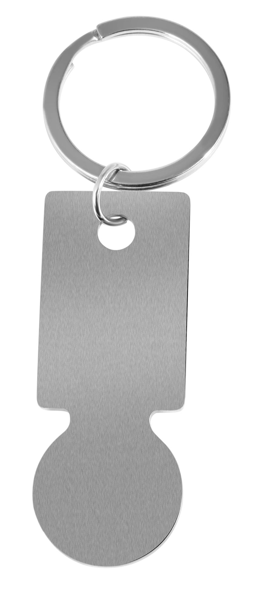 Productinformatie ""Eddie" accent sleutelhanger van roestvrij staal incl. shopping chip, graveerbaar, zilverkleurig"