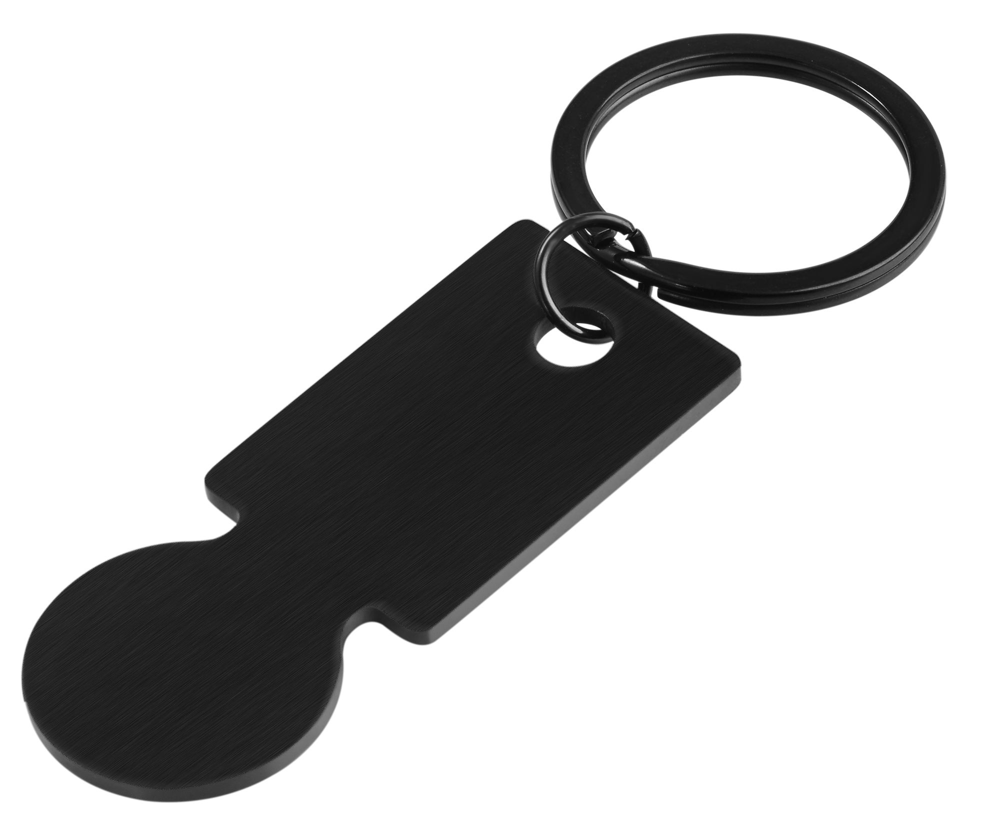 Productinformatie ""Eddie" sleutelhanger met accent van roestvrij staal, incl. boodschappenchip, graveerbaar, zwart"