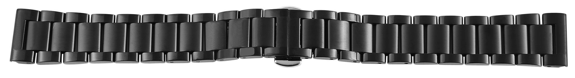 Klassisches Gliederband aus Edelstahl in Schwarz mit einem auffälligen Design aus polierten Randgliedern und gebürsteten Mittelgliedern. Diese sportliche Optik überzeugt. Mit Anstoßbreiten von 18 mm bis 24 mm bietet diese Armbandkollektion zudem eine weite Bandbreite für passende Gehäuse unterschiedlicher Größen. Abgerundet wird das 18 cm lange und 3 mm starke Armband durch eine komfortable Butterfly-Schließe. Der Druckmechanismus dieser Schließe lässt ein schnelles und einfaches Öffnen des Armbandes zu, während er dieses gleichzeitig sicher schließt.