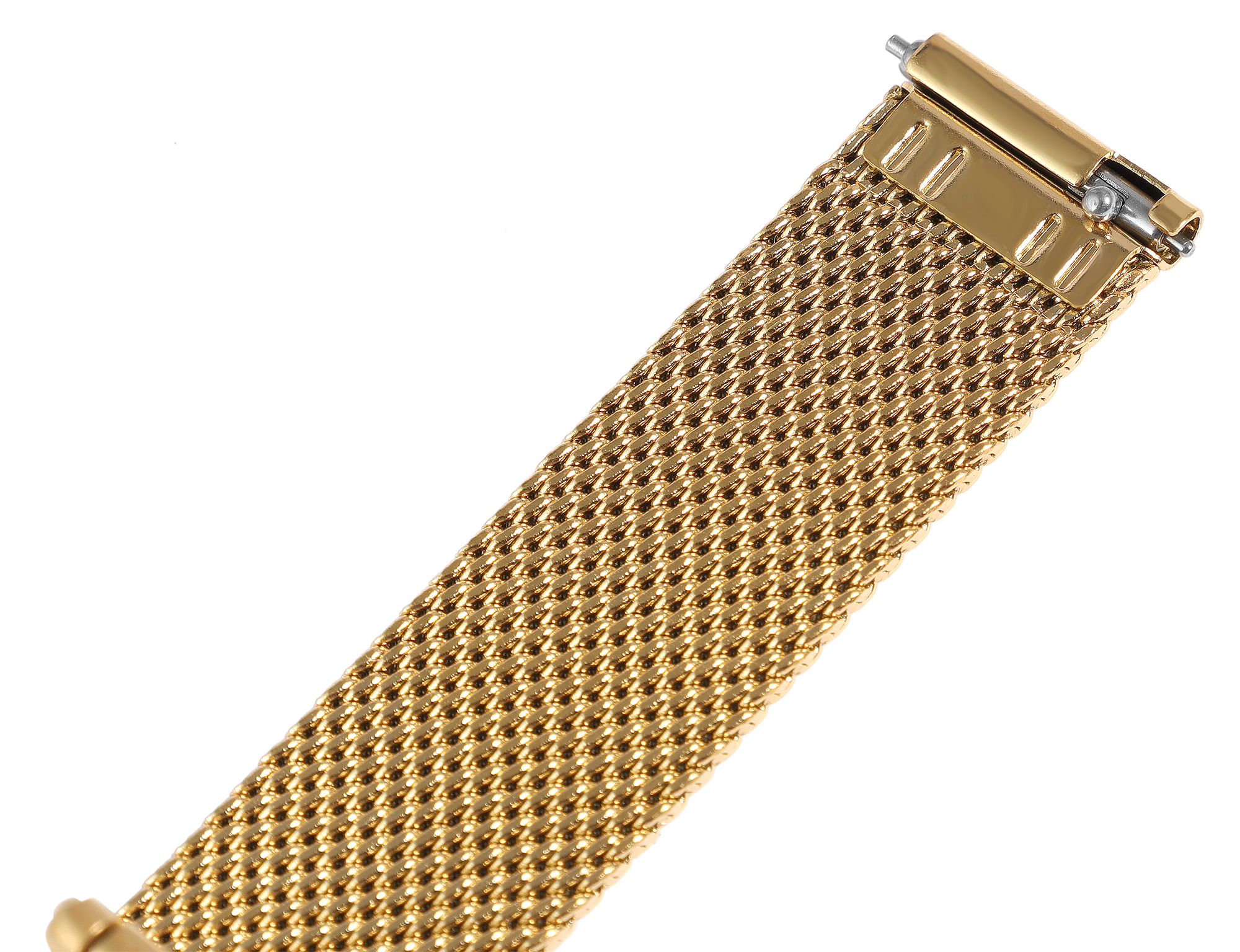 Unser goldfarbenes Milanaise-Armband aus Edelstahl ist die perfekte Wahl, um Ihrer Uhr einen Hauch von Eleganz zu verleihen. Die feine Netzstruktur sorgt nicht nur für eine luxuriöse Optik, sondern auch für höchsten Tragekomfort den ganzen Tag.
